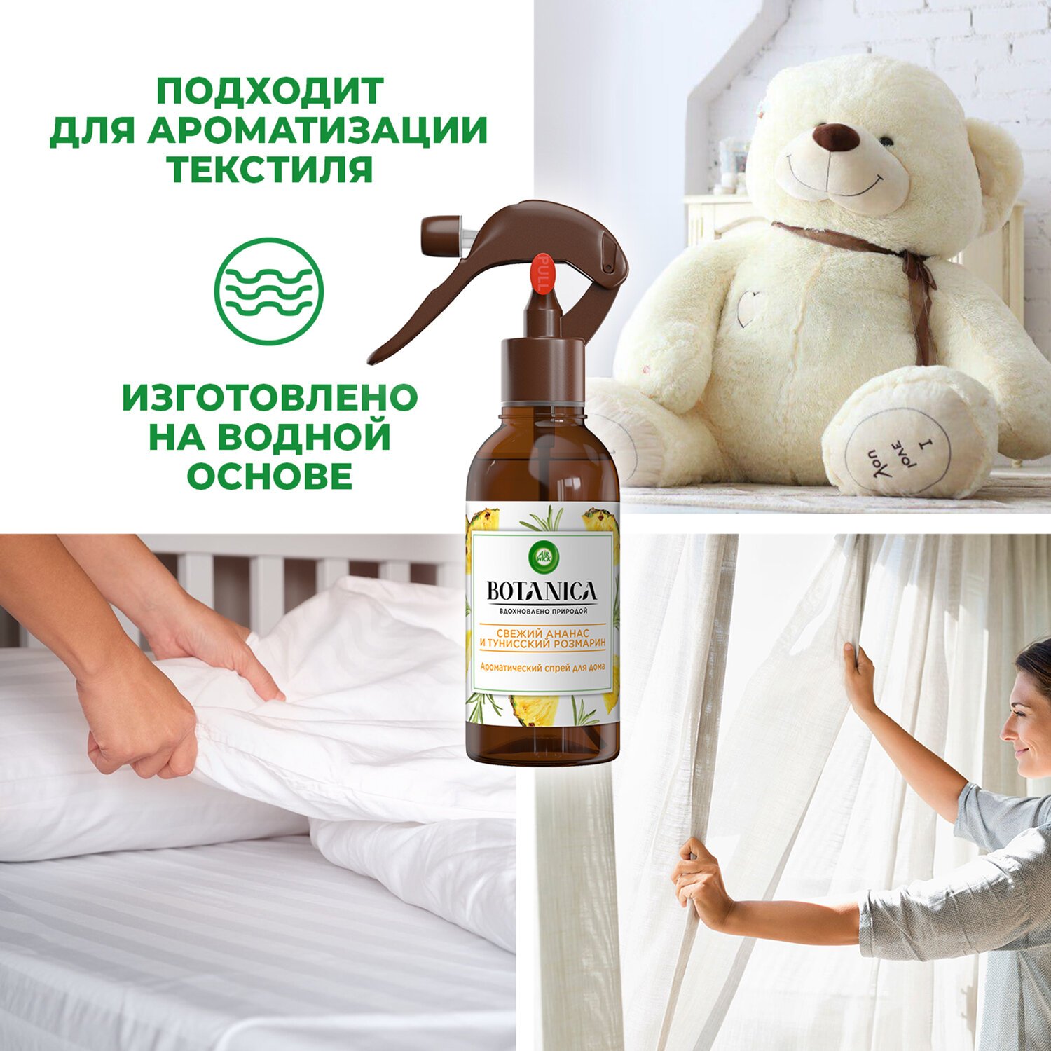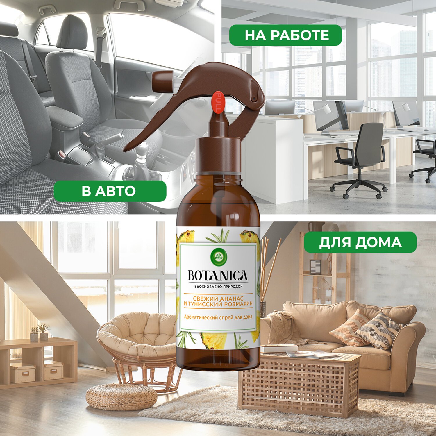 Насладитесь бодрящим ароматом сочного ананаса в сочетании с травяными нотками тунисского розмарина. Ощутите взрыв свежести с ароматическим спреем AIRWICK BOTANICA, утонченные нотки которого мгновенно наполнят природой Ваш дом.