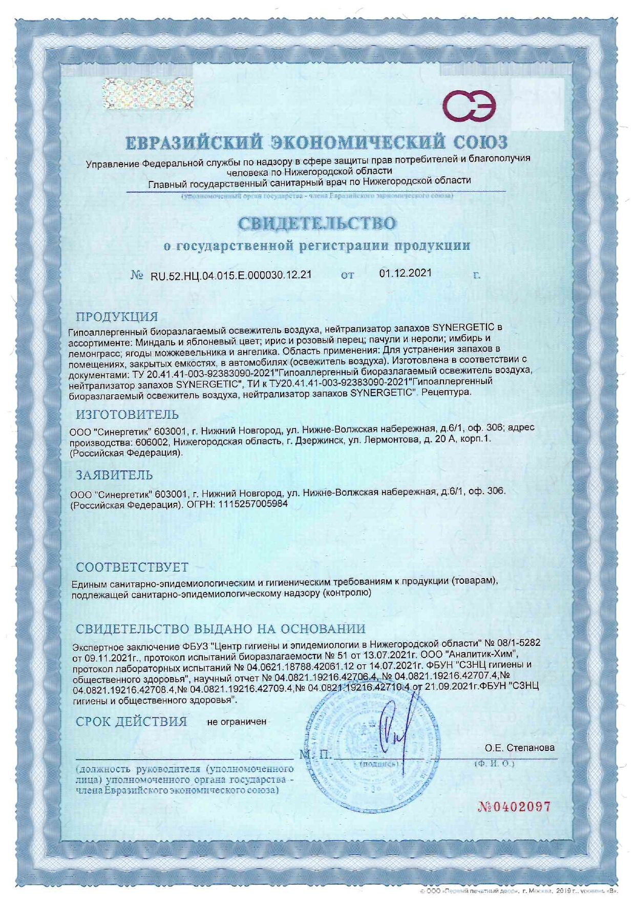 Биоразлагаемый освежитель воздуха, нейтрализатор запахов SYNERGETIC "Ягоды можжевельника и ангелика" на водной основе на 98,2% состоит из натуральных компонентов. Парфюмерная композиция с эфирными маслами сосны, ягод можжевельника и эвкалипта.