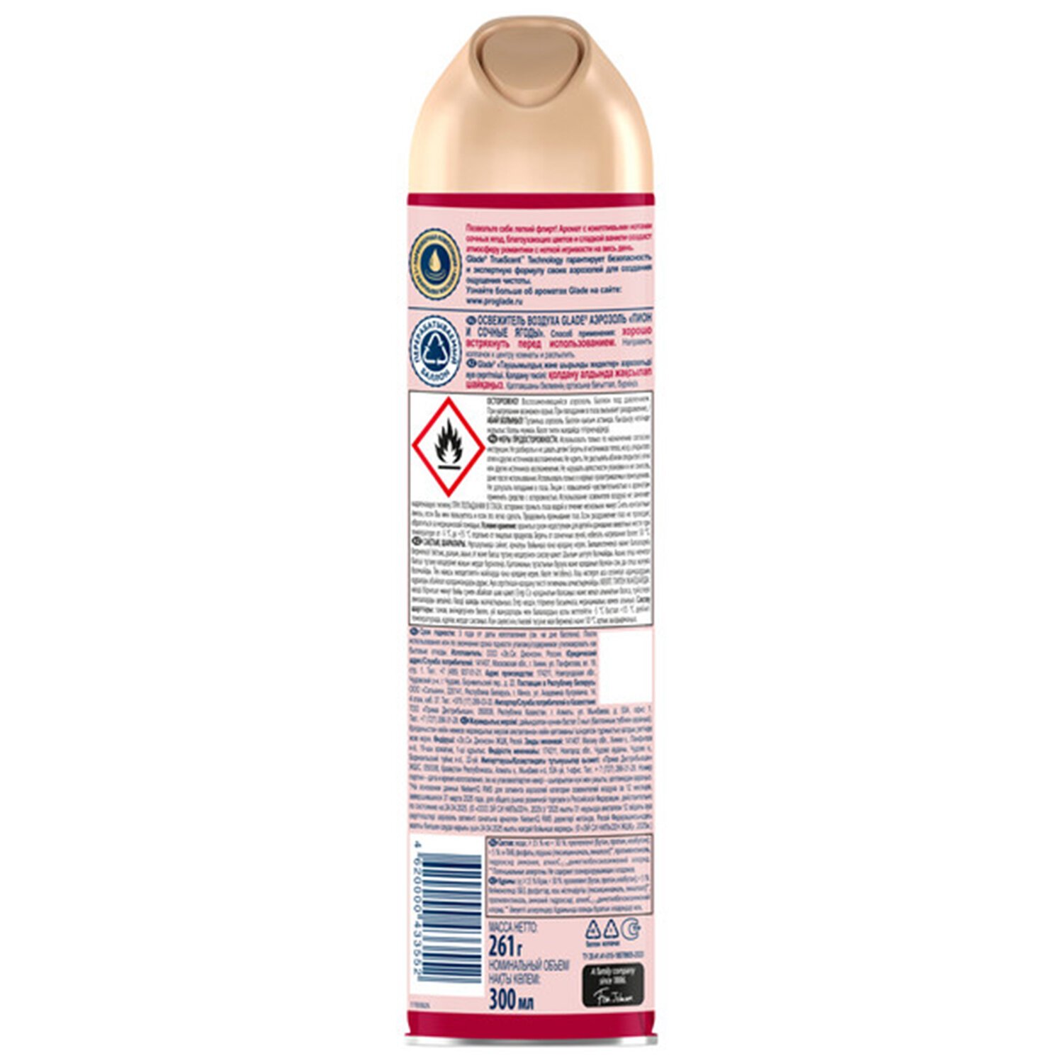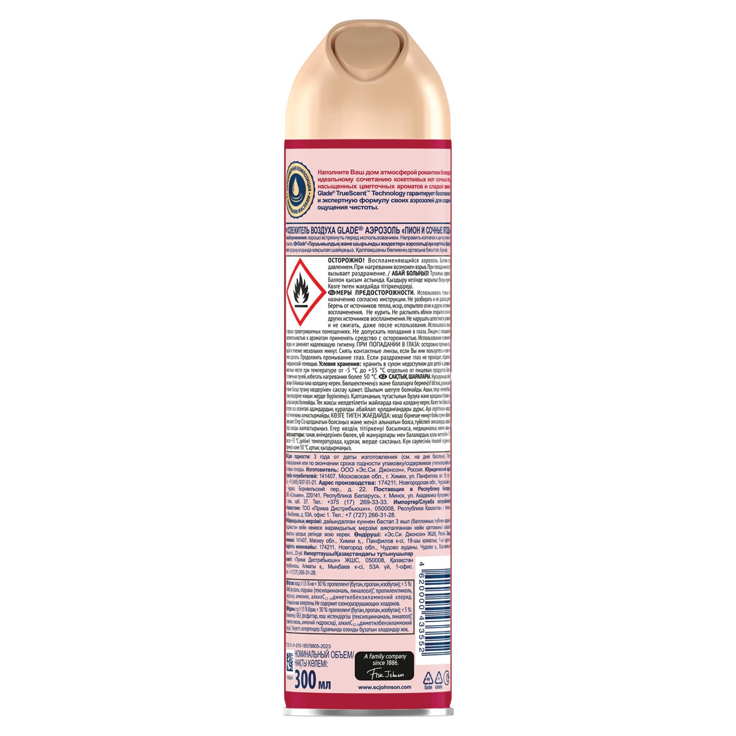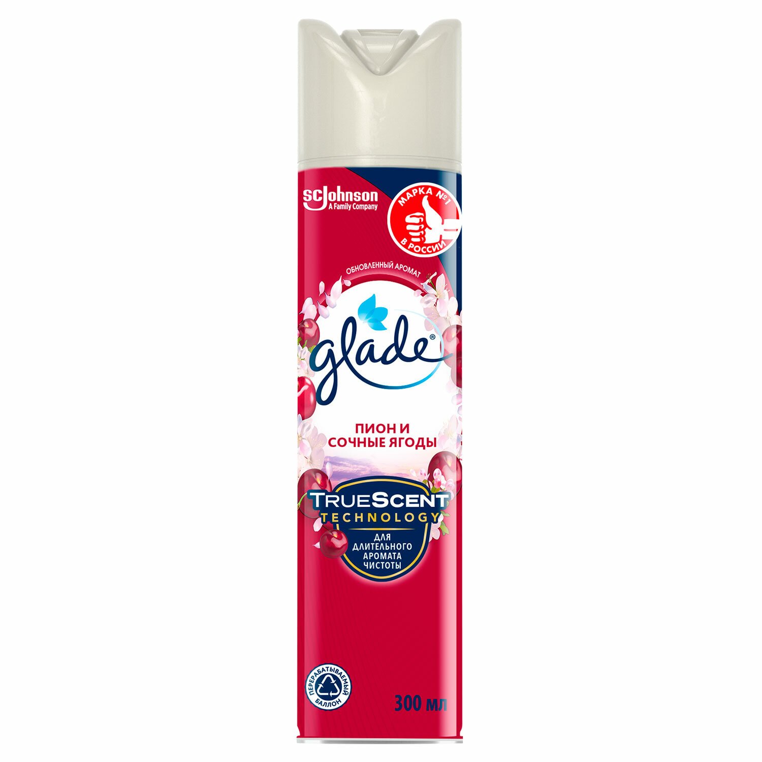 Освежитель воздуха аэрозольный 300 мл GLADE "Пион и сочные ягоды", 692365