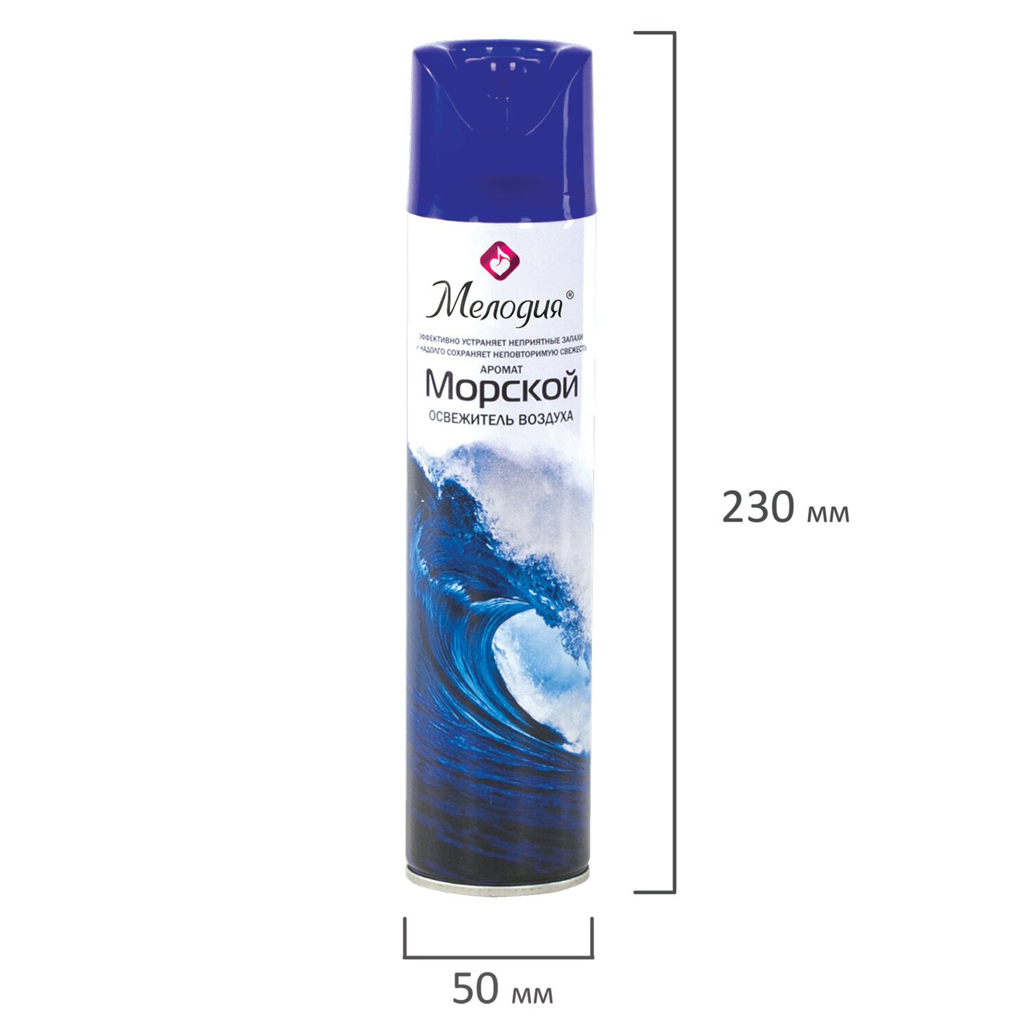 Освежитель воздуха МЕЛОДИЯ "Морской" быстро и эффективно устраняет неприятные запахи и освежает воздух в жилых и бытовых помещениях. Имеет приятный стойкий аромат, который надолго наполнит помещение свежестью.