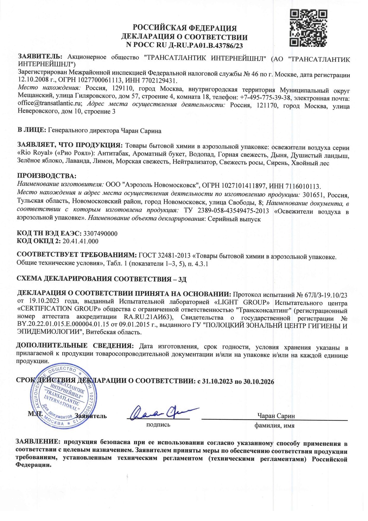 Состав: вода (30% и более), пропан/бутан/изобутан (30% и более), парфюмерная композиция (5% и менее), сорбитан олеат (5% и менее), натрия нитрит (5% и менее).
