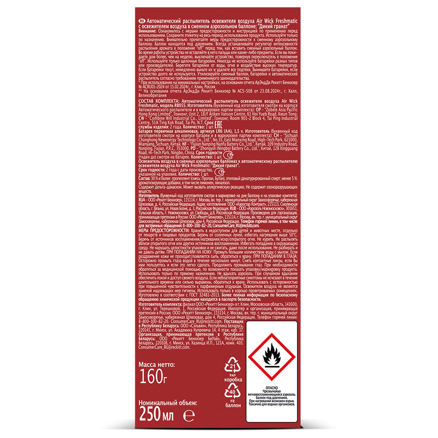 Освежитель воздуха автоматический со сменным баллоном 250 мл, AIRWICK,"Дикий гранат", 3145222