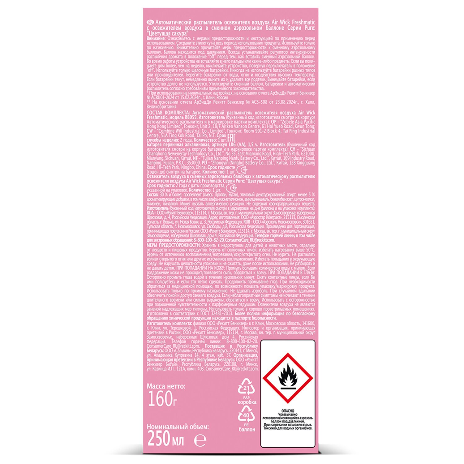Освежитель воздуха автоматический со сменным баллоном 250 мл, AIRWICK Pure, "Цветущая сакура"