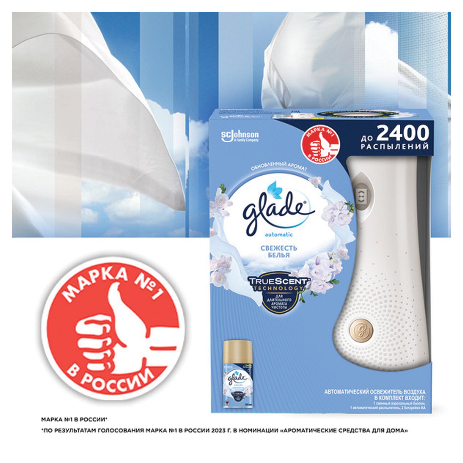Освежитель воздуха диспенсер автоматический со сменным баллоном 269 мл GLADE "Свежесть белья", 864988