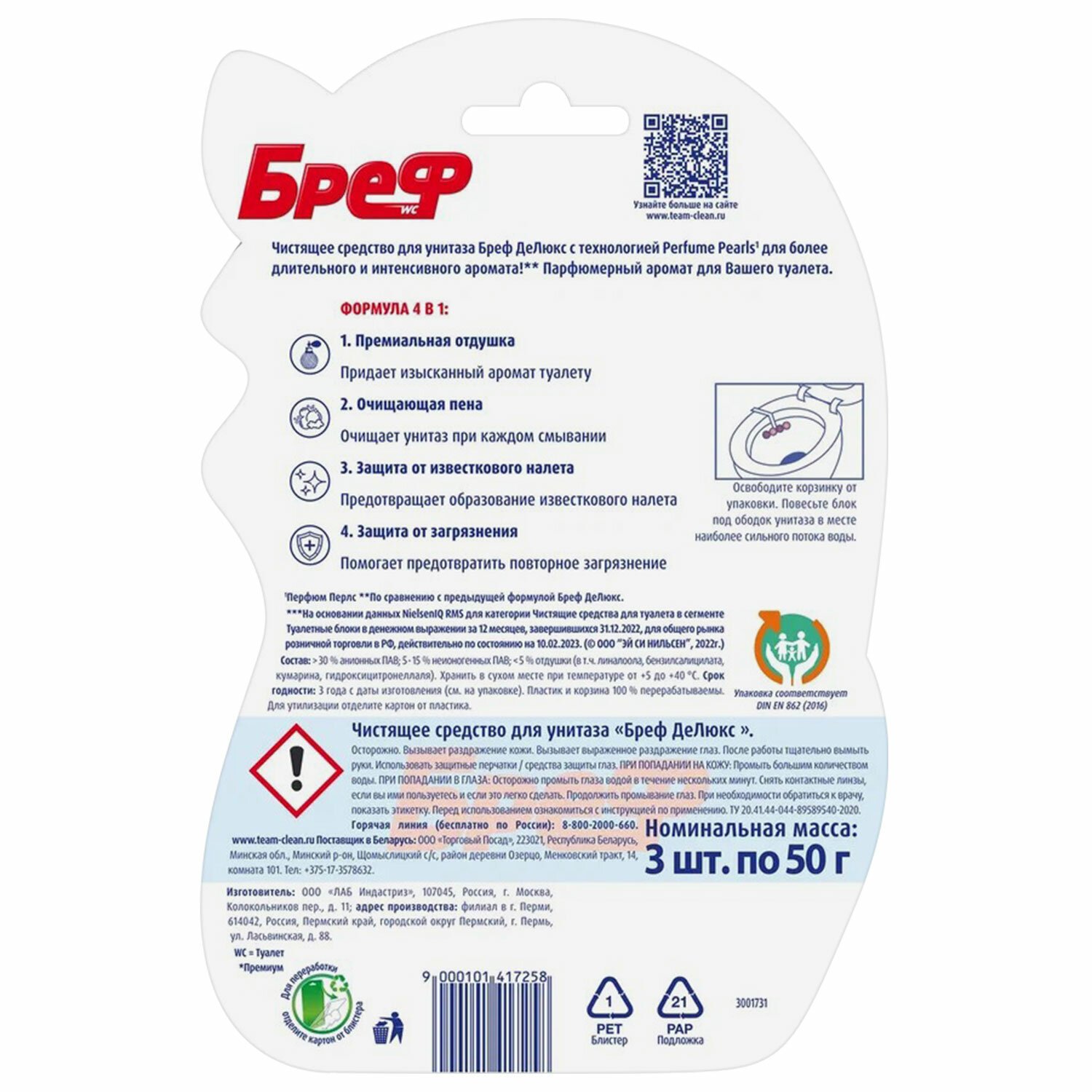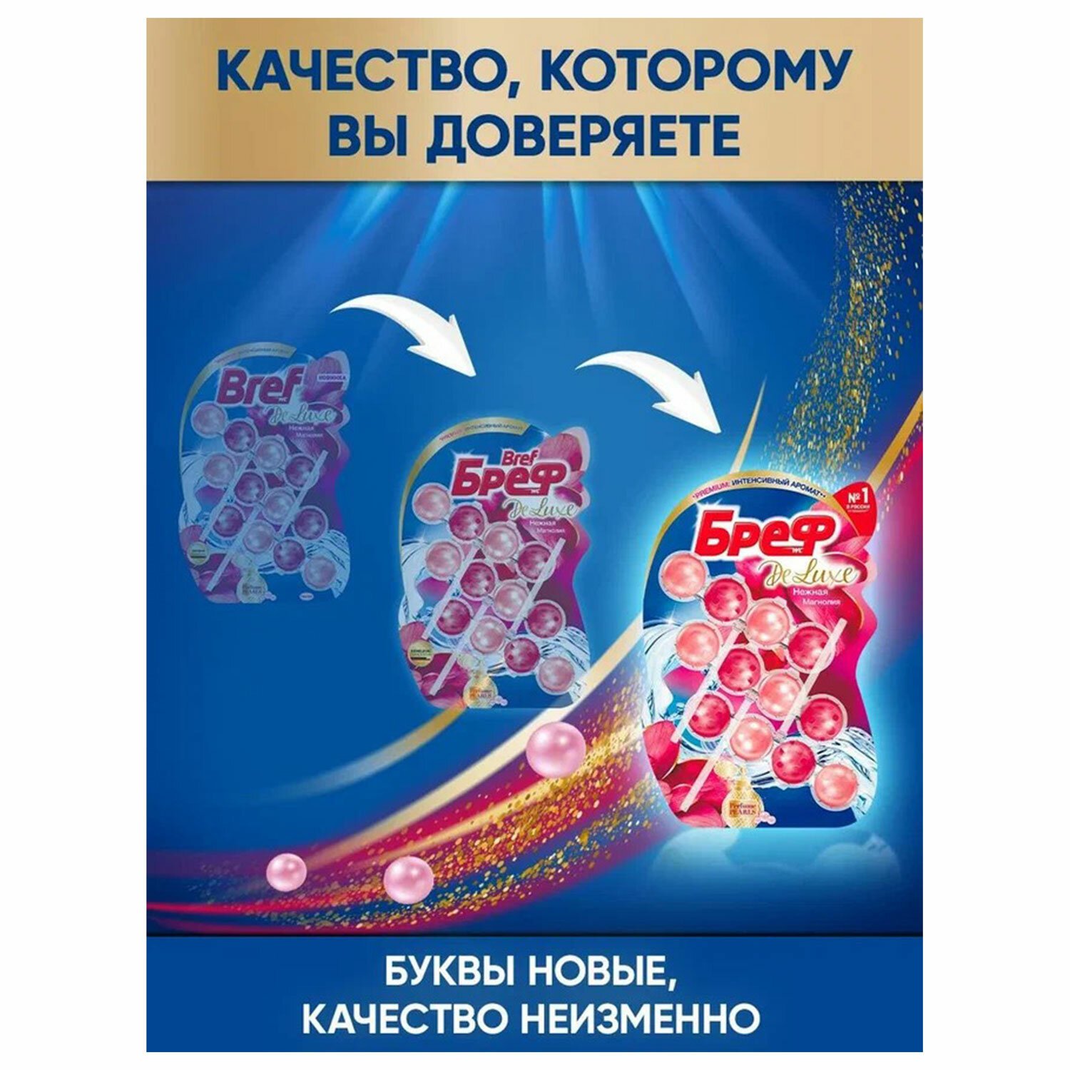 Освежитель WC (для туалета) твердый 3х50 г БРЕФ De Luxe, "Нежная магнолия", 17258