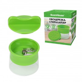 Овощерезка-спиралайзер BOOMHOUSE представляют из себя двухсоставкую конструкцию из пластикового плододержателя для безопасного и комфортного использования инструмента и пластикового корпуса с лезвиями диаметром 3 мм из нержавеющей стали, которые быстро и качественно нарезают овощи ровной спиралью. Она идеально подходит для спиральной нарезки огурцов, моркови, цукини и других продуктов.
