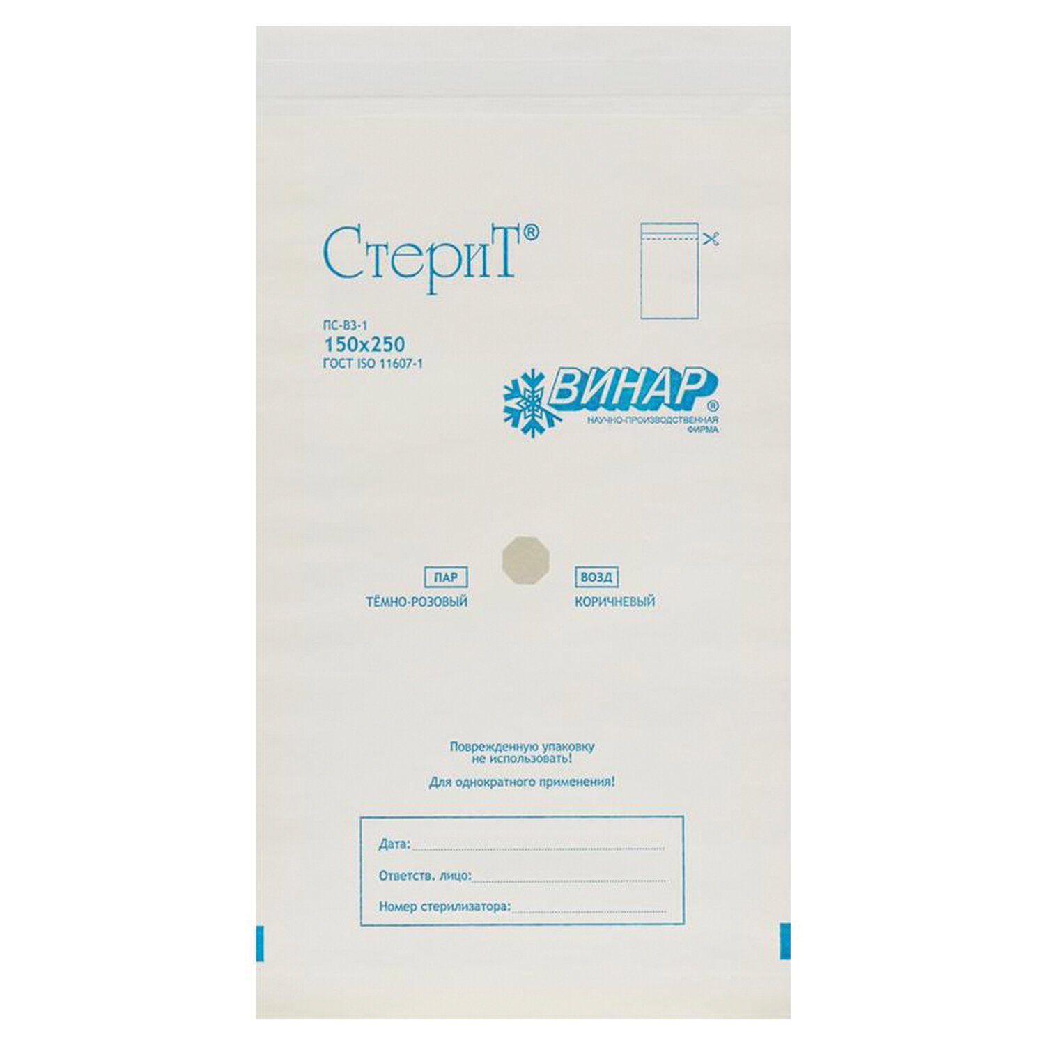 Пакет бумажный самоклеящийся ВИНАР СТЕРИТ, комплект 100 шт., для ПАРОВОЙ/ВОЗДУШНОЙ стерилизации, 150х250 мм