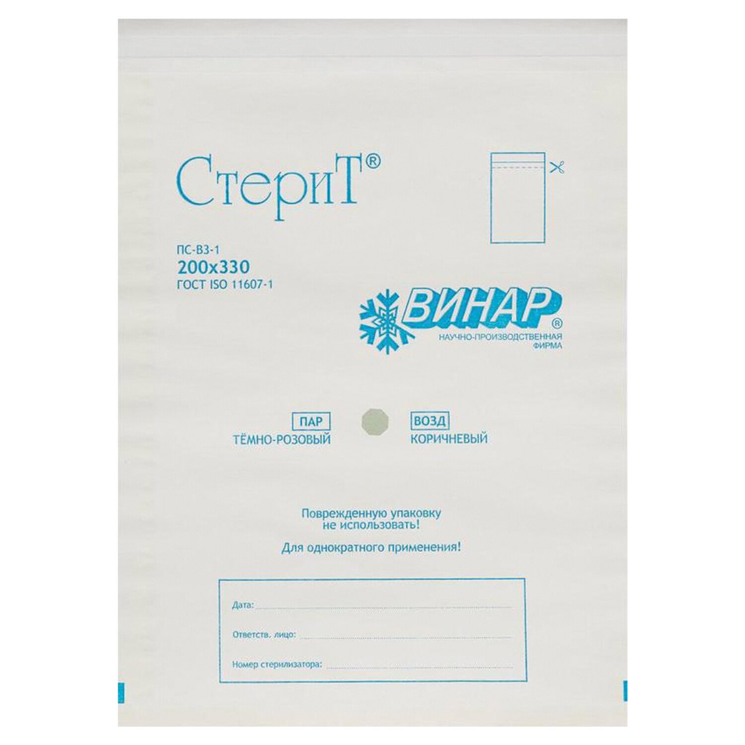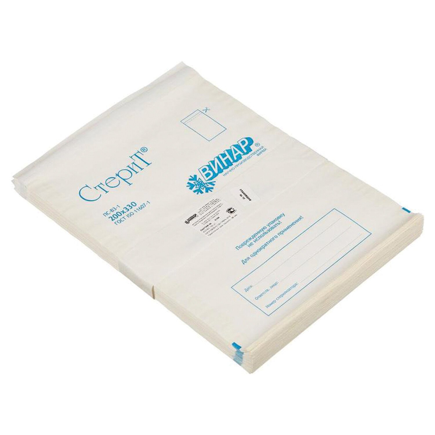 Пакет бумажный самоклеящийся ВИНАР СТЕРИТ, комплект 100 шт., для ПАРОВОЙ/ВОЗДУШНОЙ стерилизации, 200х330 мм