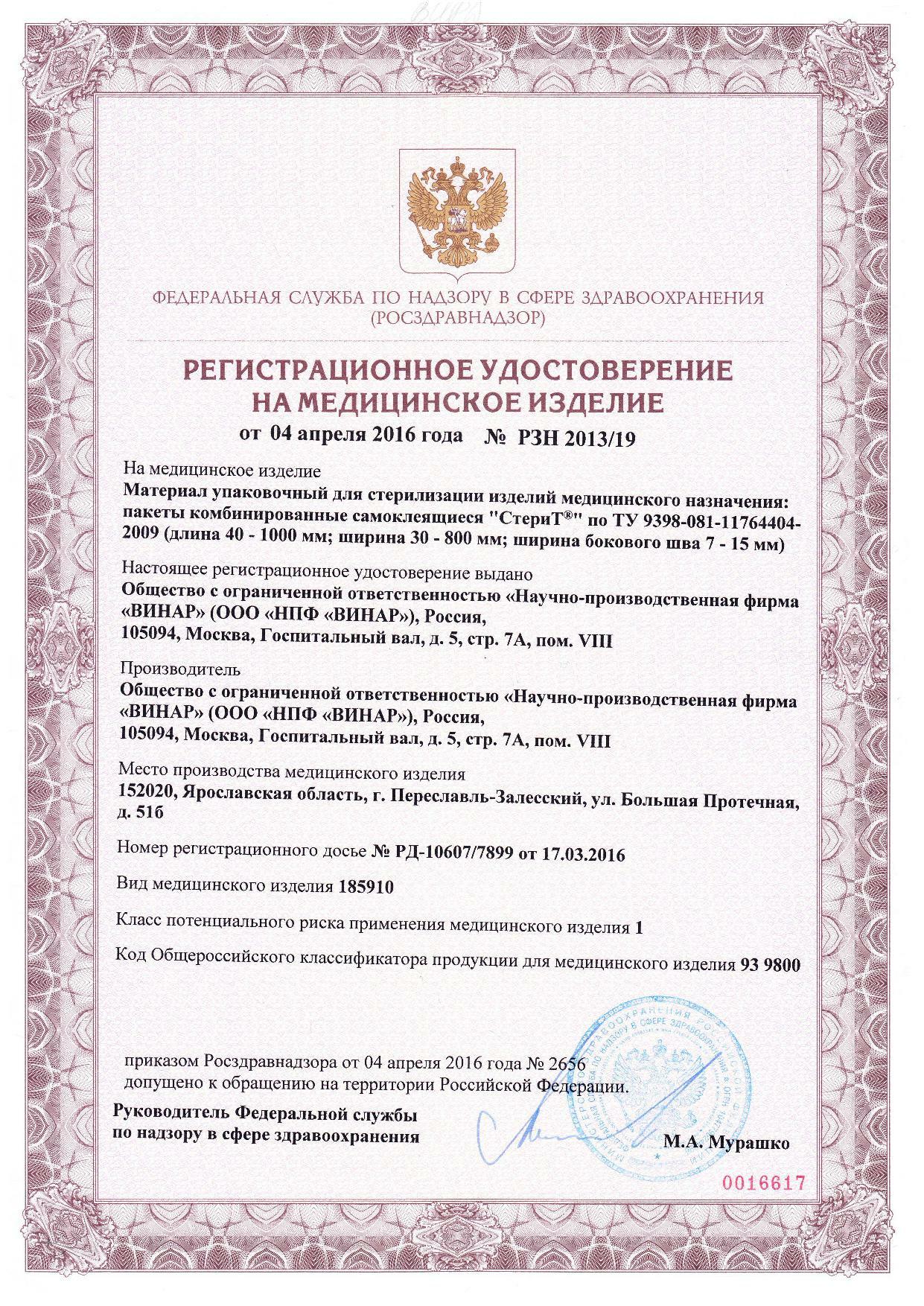 Регистрационные удостоверения № РЗН 2013/19, № РЗН 2013/108 от 04.04.2016