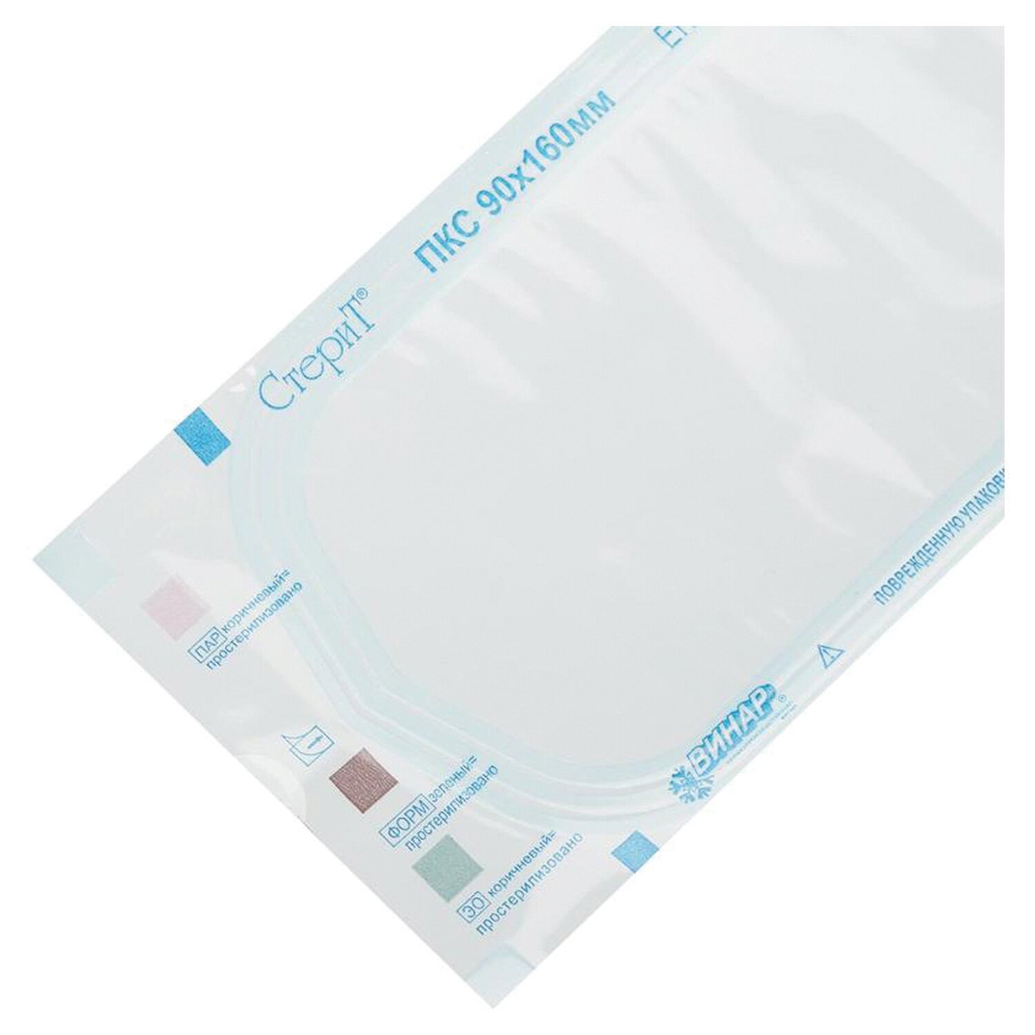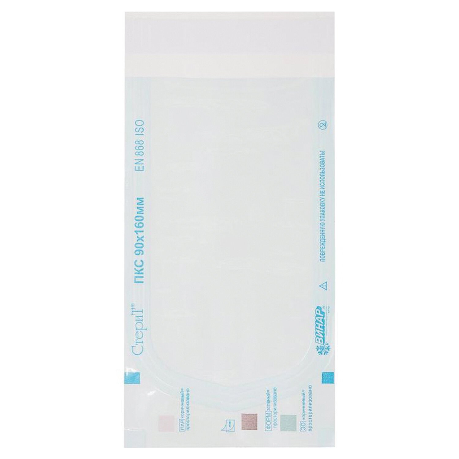 Пакет комбинированный самоклеящийся ВИНАР СТЕРИТ, комплект 100 шт., для ПАРОВОЙ/ГАЗОВОЙ стерилизации, 90х160 мм