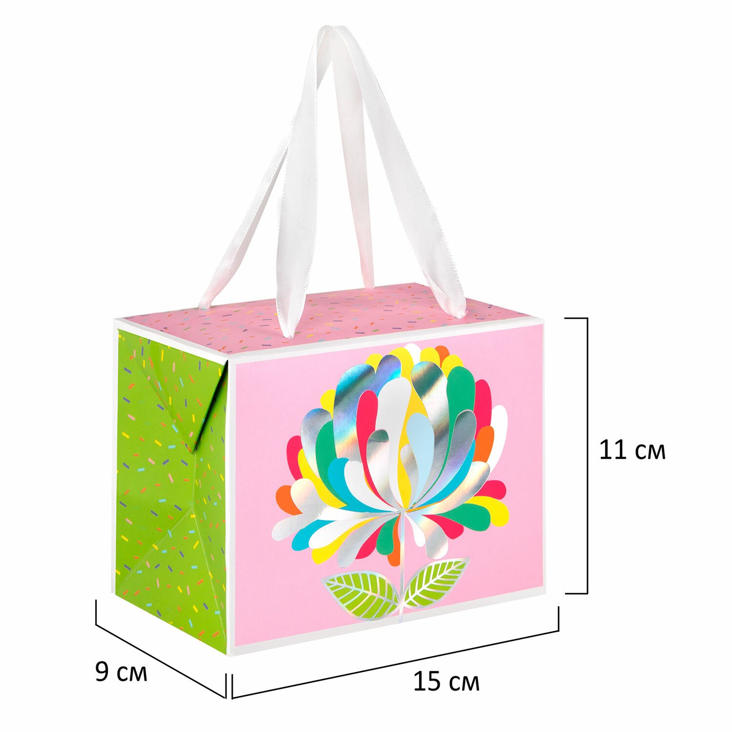 Пакет-коробка подарочный (1 штука) "Цветок", 15х9х11 см, тиснение фольгой, ламинация, 90074