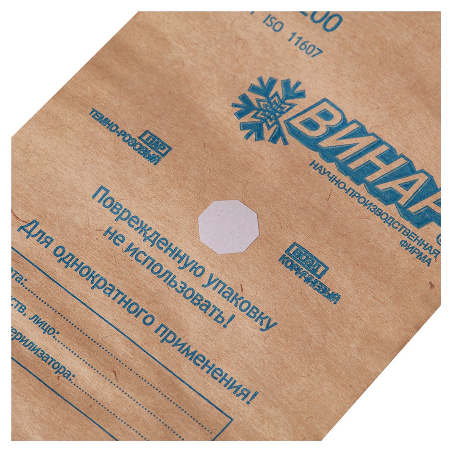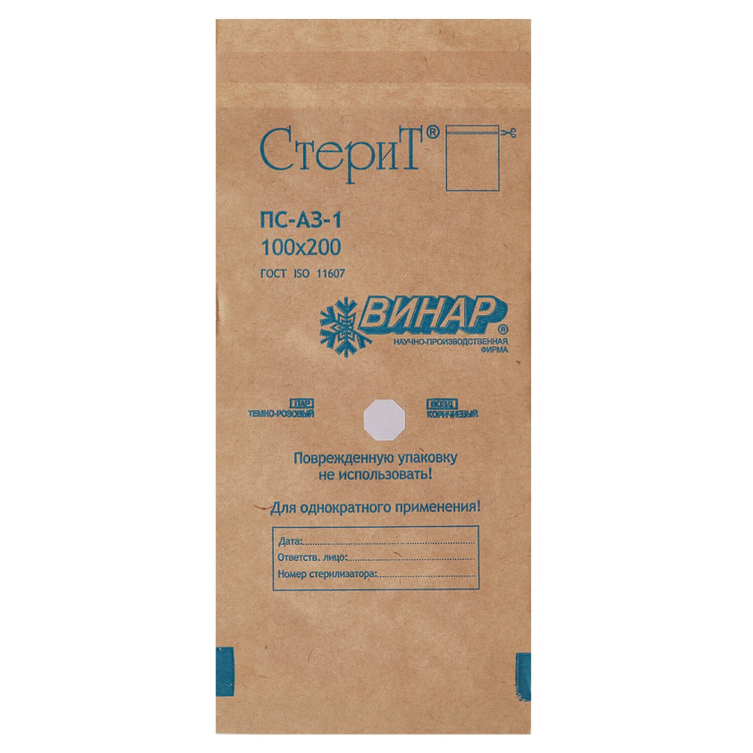 Пакет крафт самоклеящийся ВИНАР СТЕРИТ, комплект 100 шт., для ПАРОВОЙ/ВОЗДУШНОЙ стерилизации, 100х200 мм