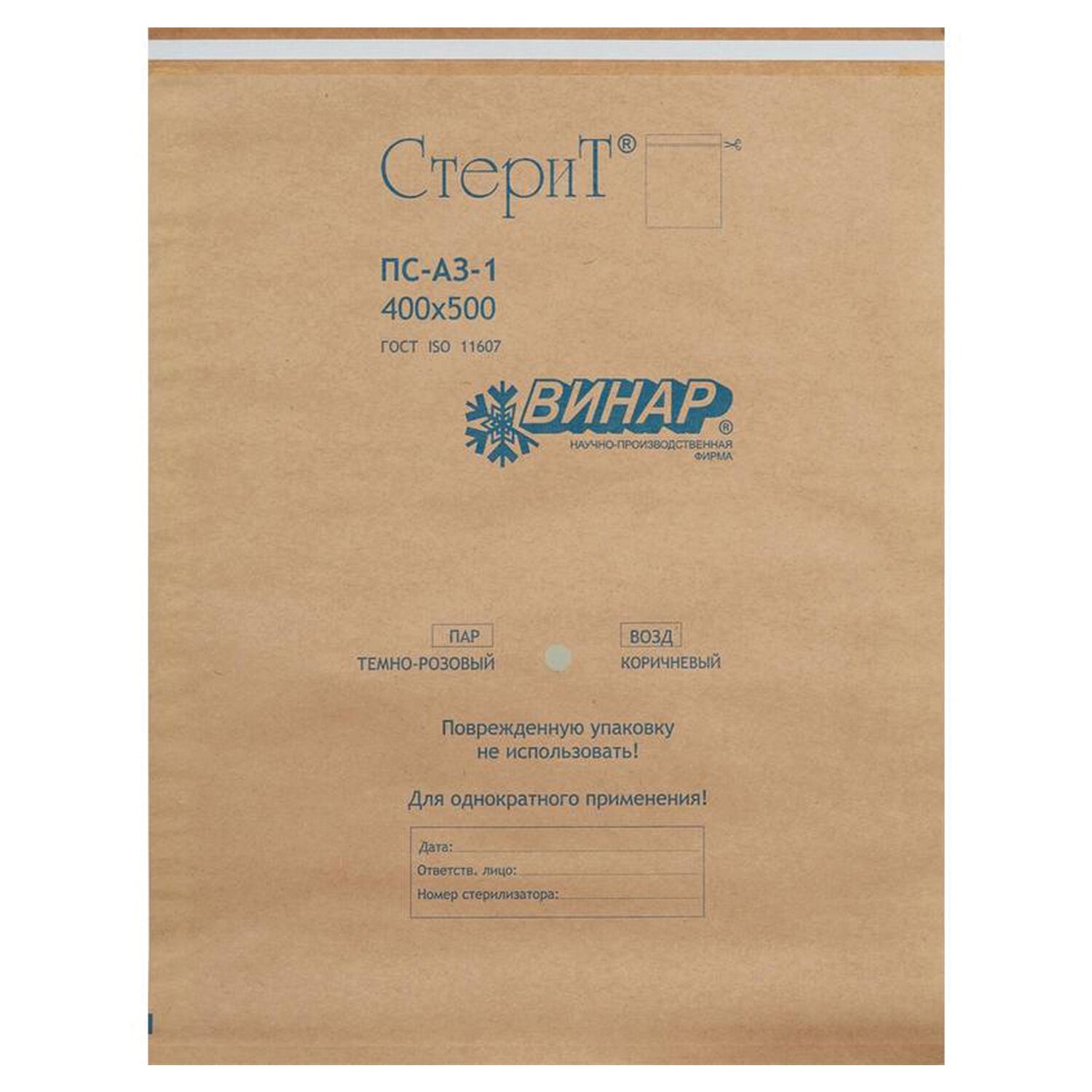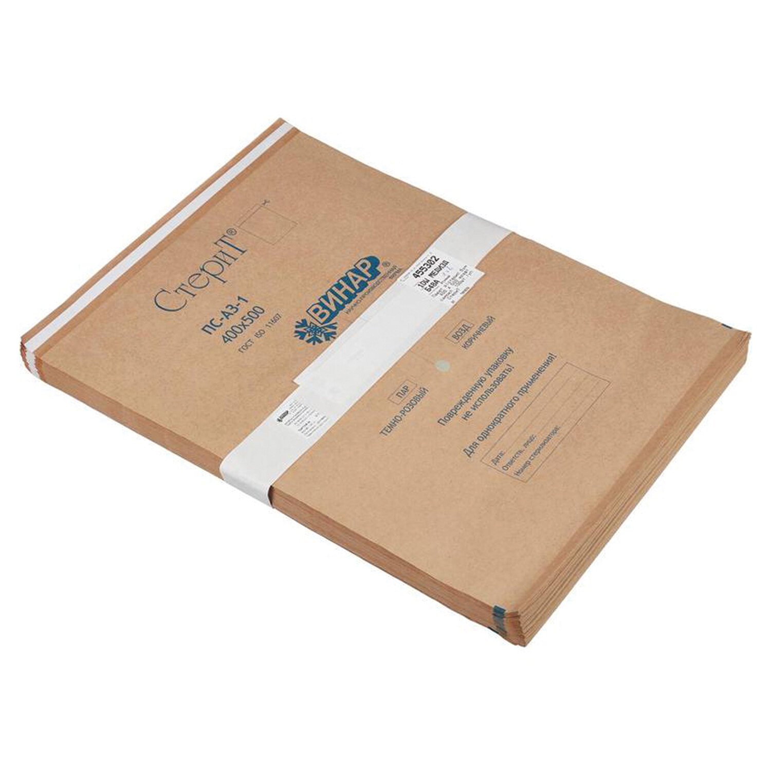Пакет крафт самоклеящийся ВИНАР СТЕРИТ, комплект 100 шт., для ПАРОВОЙ/ВОЗДУШНОЙ стерилизации, 400х500 мм
