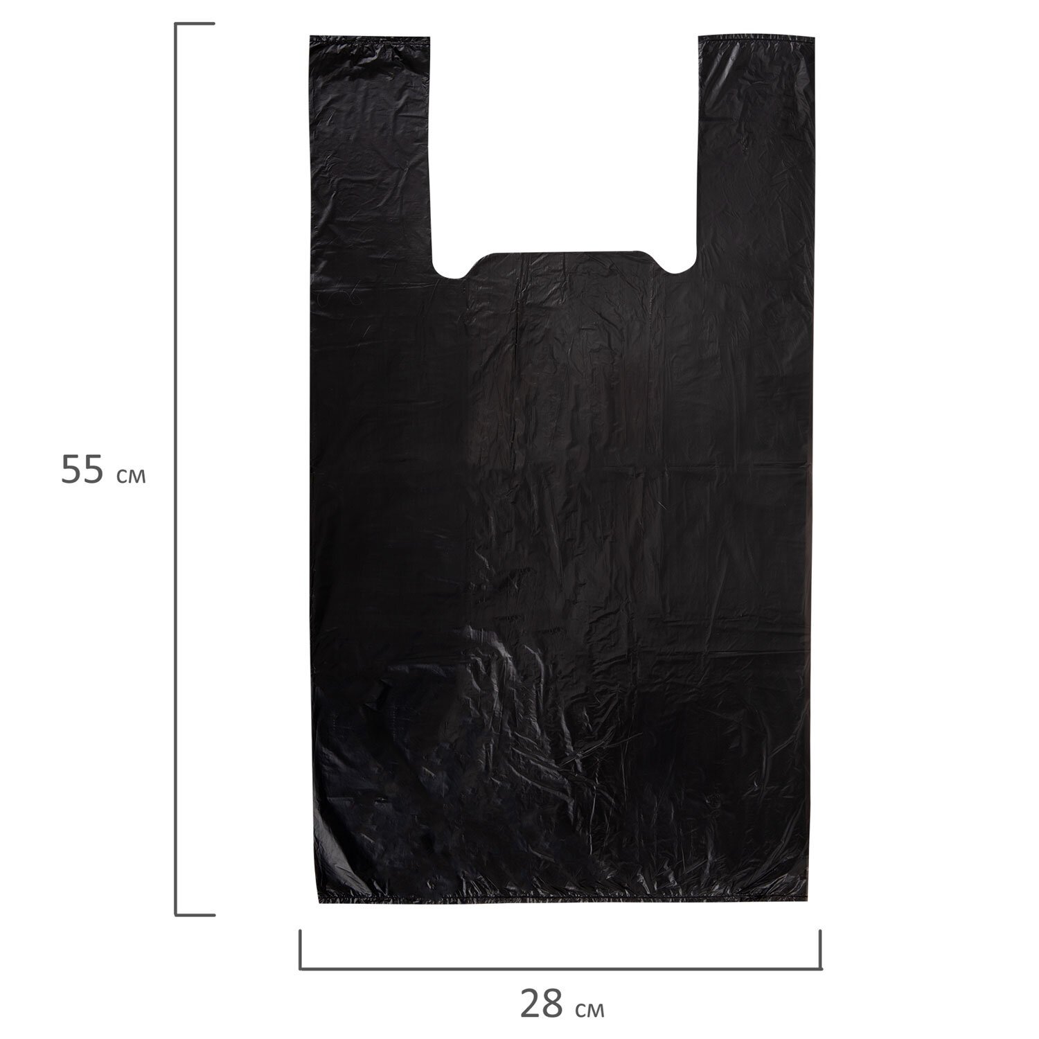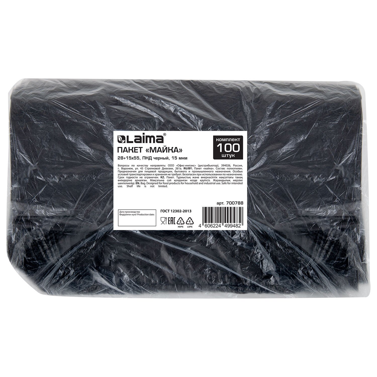 Пакет "майка" КОМПЛЕКТ 100 штук, 28+15х55, ПНД черный, 15 мкм, LAIMA, 700788