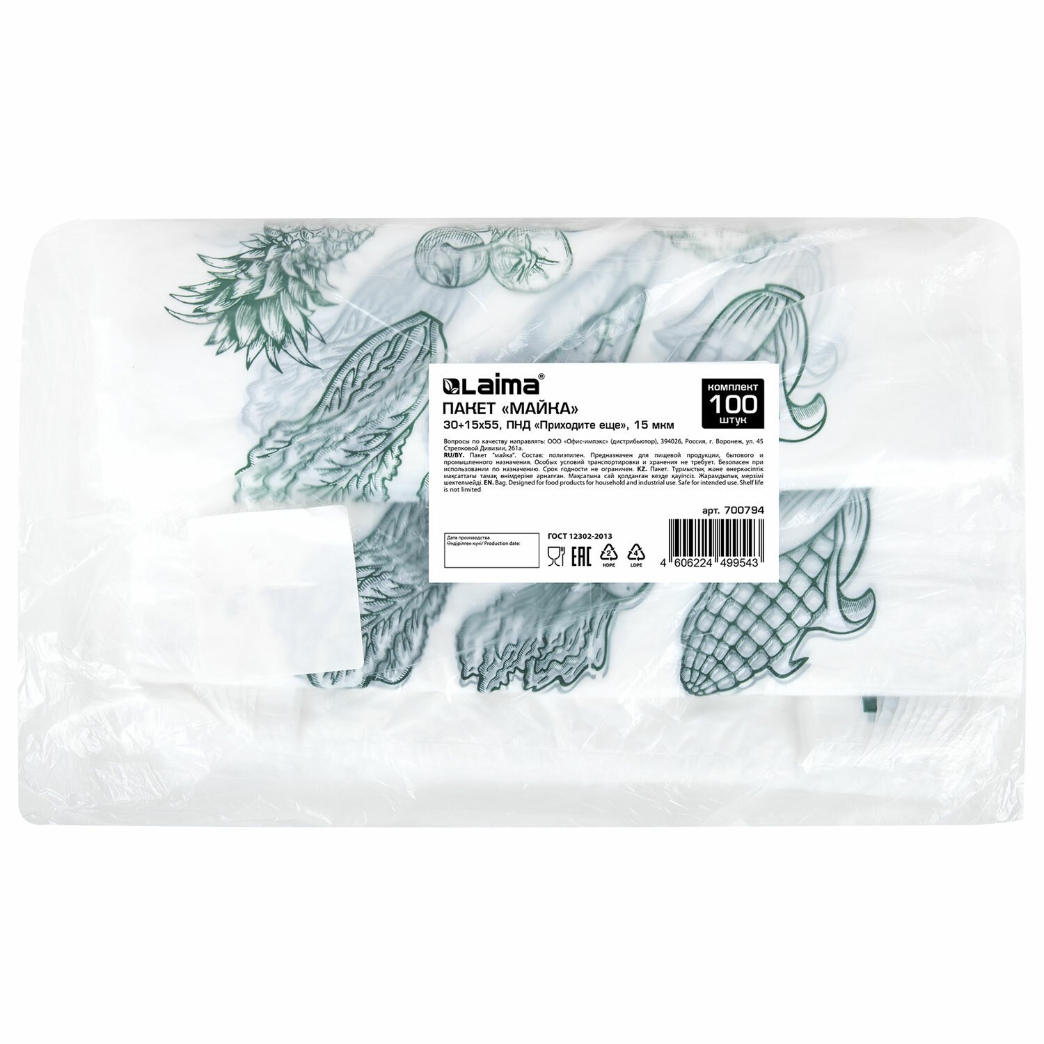 Пакет "майка" КОМПЛЕКТ 100 штук, 30+15х55, ПНД "Приходите еще", 15 мкм, LAIMA, 700794