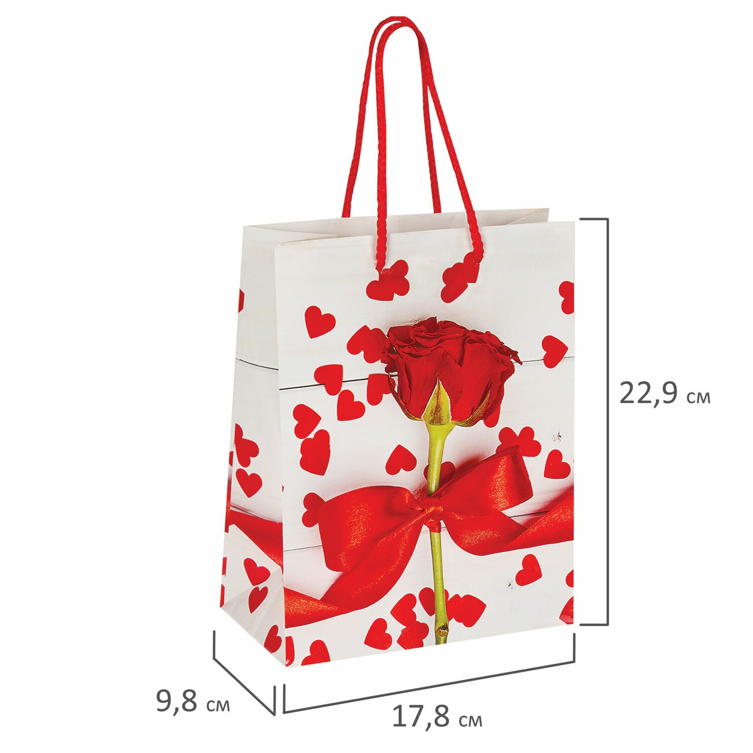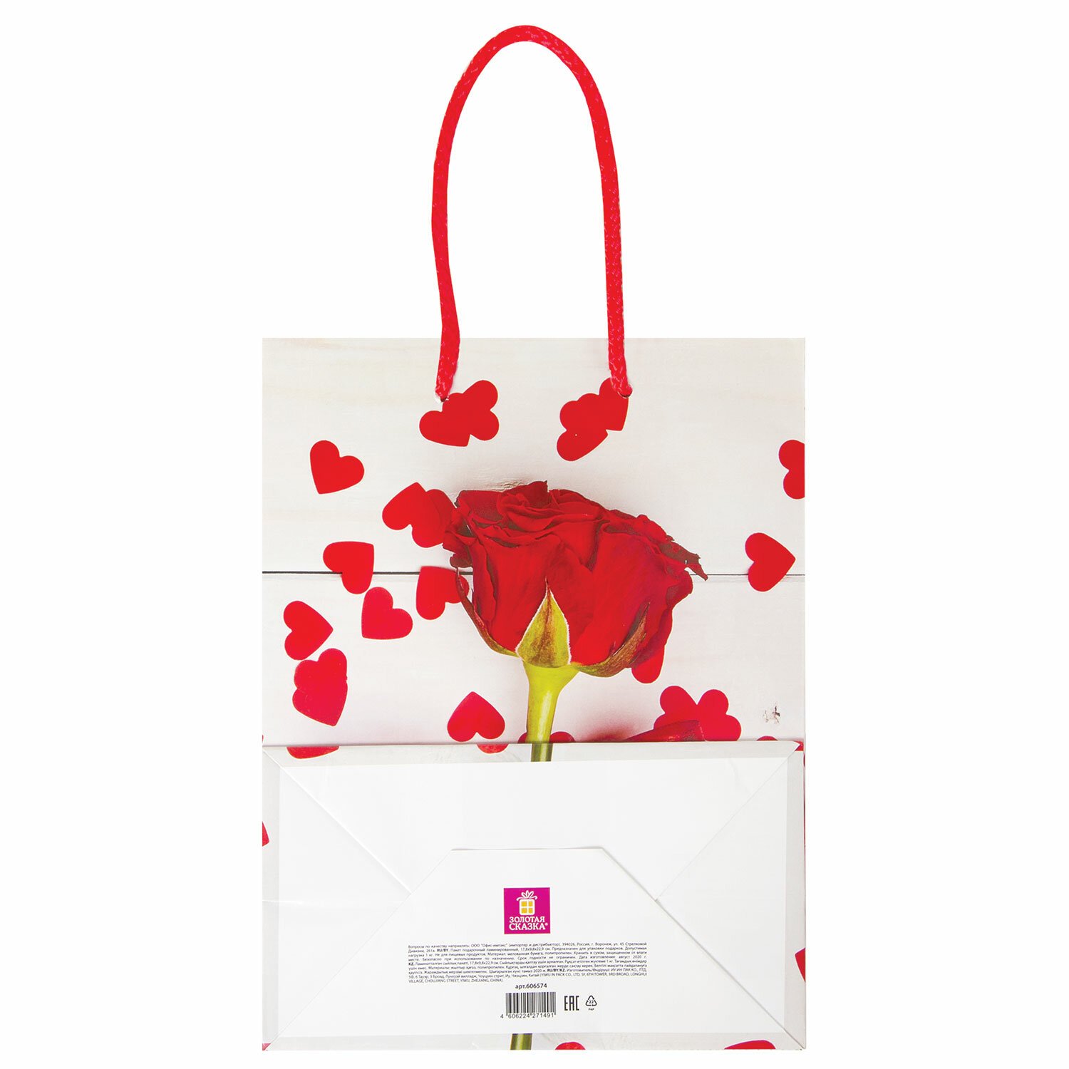 Пакет подарочный (1 штука) 18x10x23 см, ЗОЛОТАЯ СКАЗКА "Роза с лентой", ламинированный, 606574