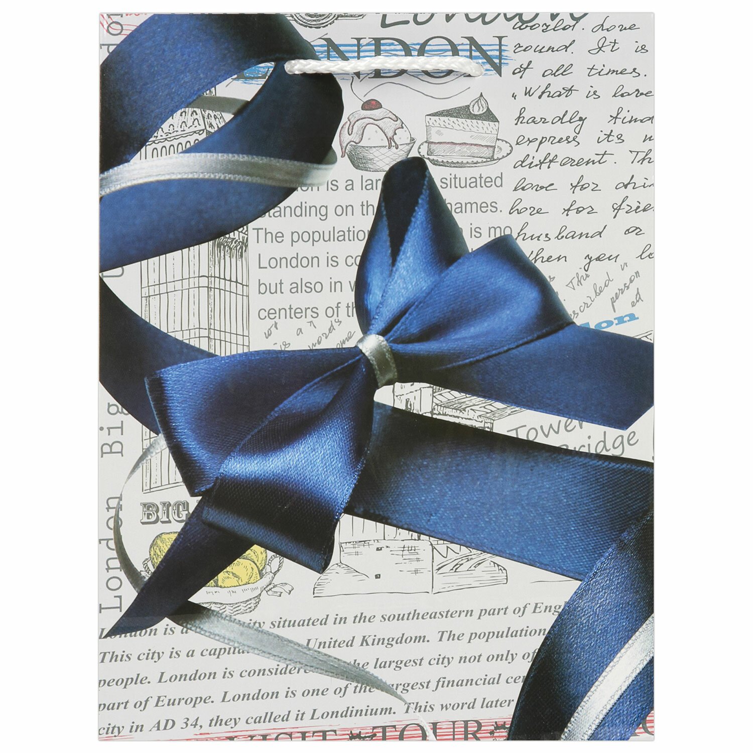 Пакет подарочный (1 штука) 18x10x23 см, ЗОЛОТАЯ СКАЗКА "Синий бант", ламинированный, 606599