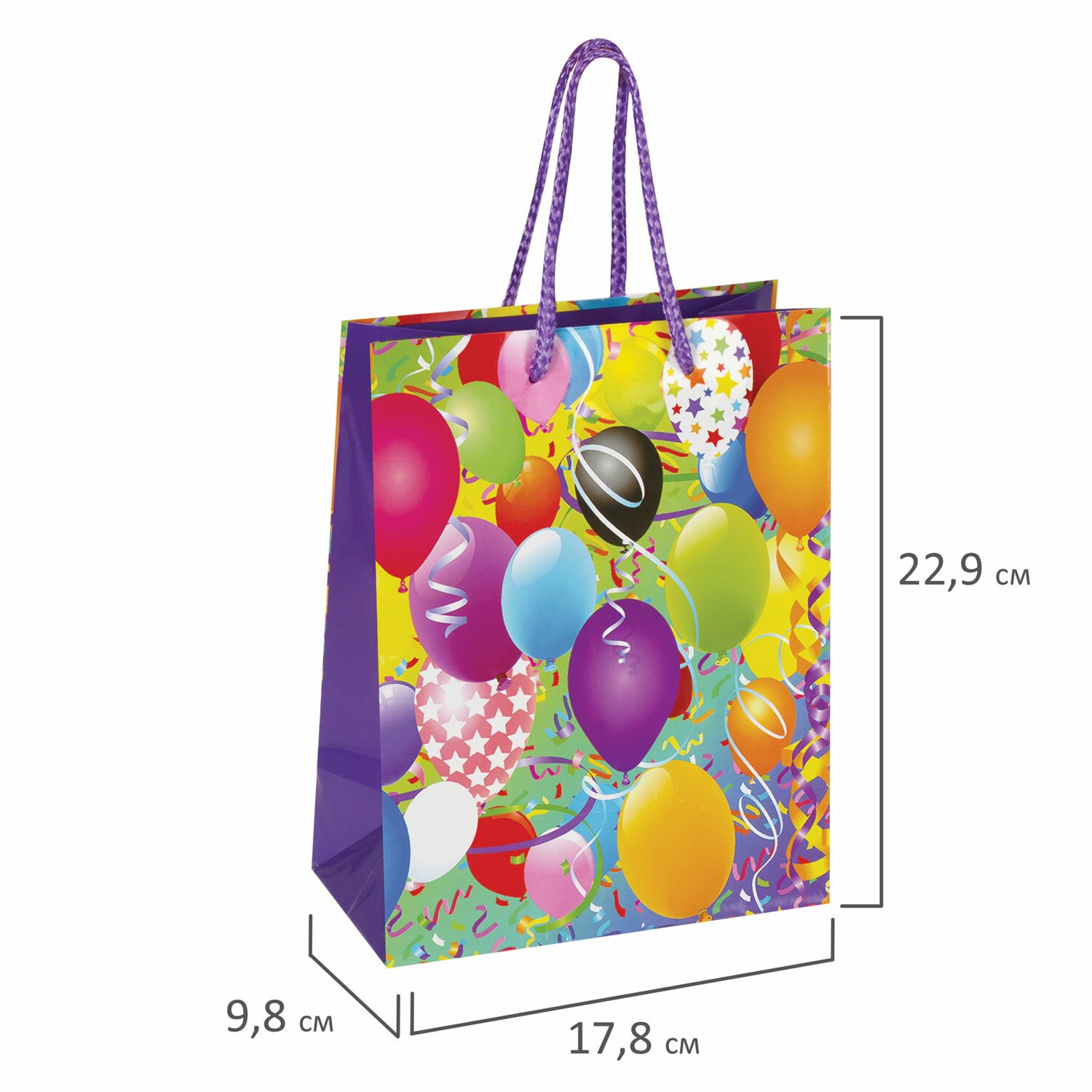 Пакет подарочный (1 штука) 18x10x23 см, ЗОЛОТАЯ СКАЗКА "Воздушные шары", ламинированный, 606590