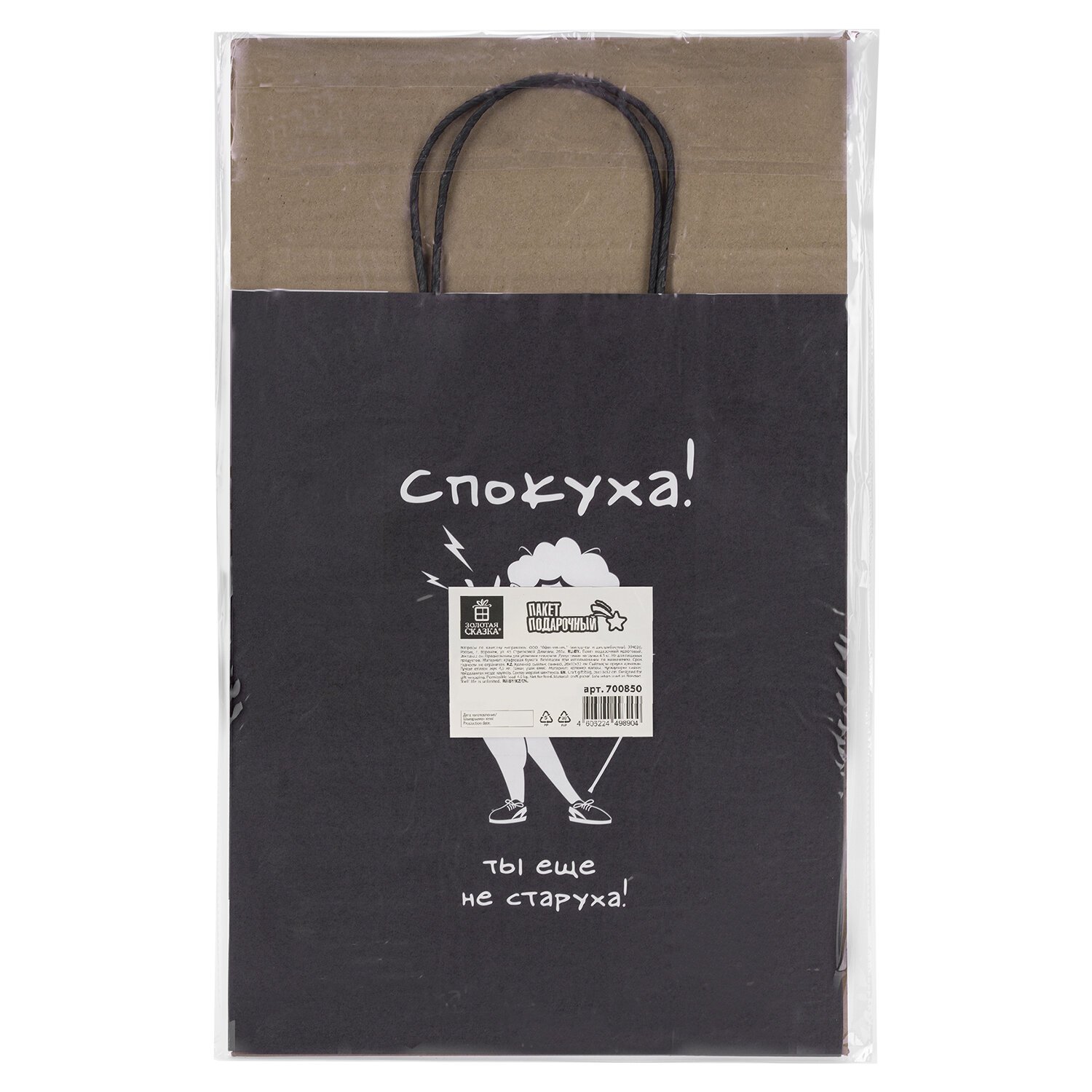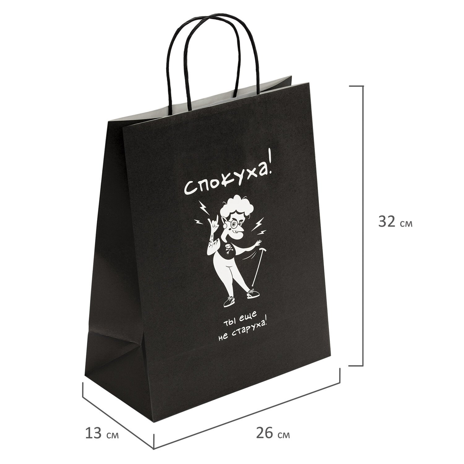 Пакет подарочный (1 штука) 26х13х32см (L) "Ещё не старуха", крафт, ЗОЛОТАЯ СКАЗКА, 700850