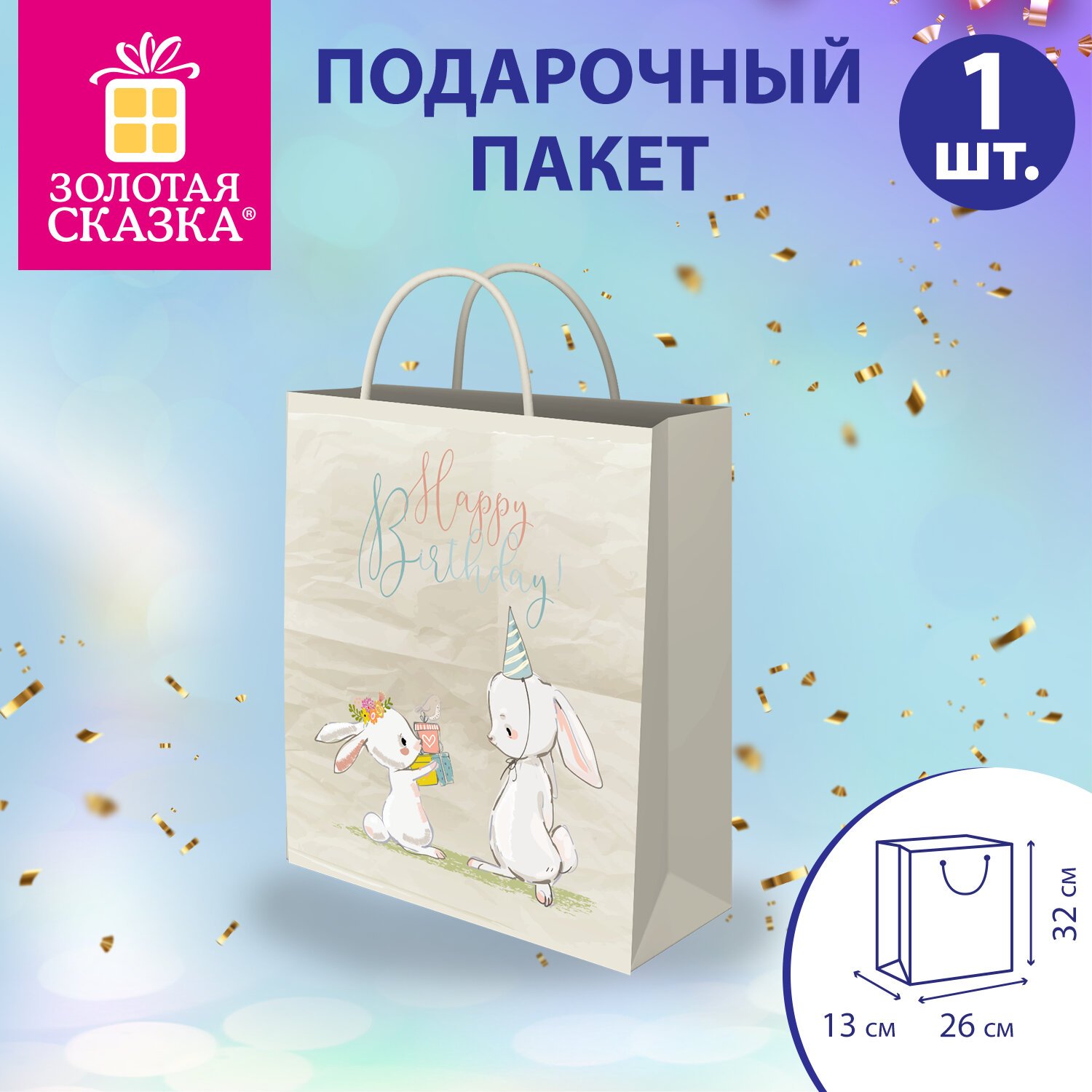 Пакет подарочный (1 штука) 26х13х32см (L),"Happy B-day", глиттер, ЗОЛОТАЯ СКАЗКА, 700839