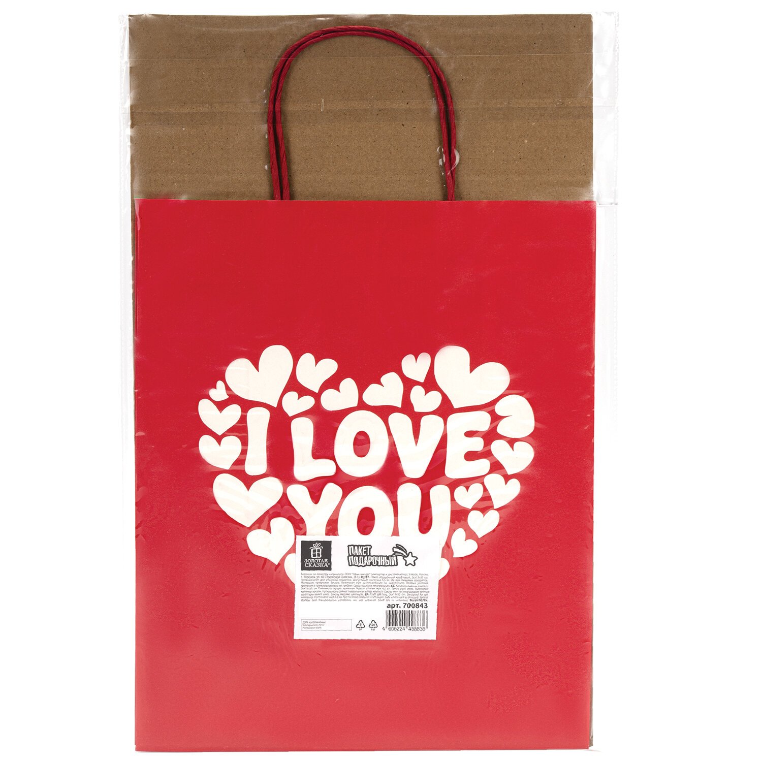 Пакет подарочный (1 штука) 26х13х32см (L) "Просто люблю", крафт, ЗОЛОТАЯ СКАЗКА, 700844
