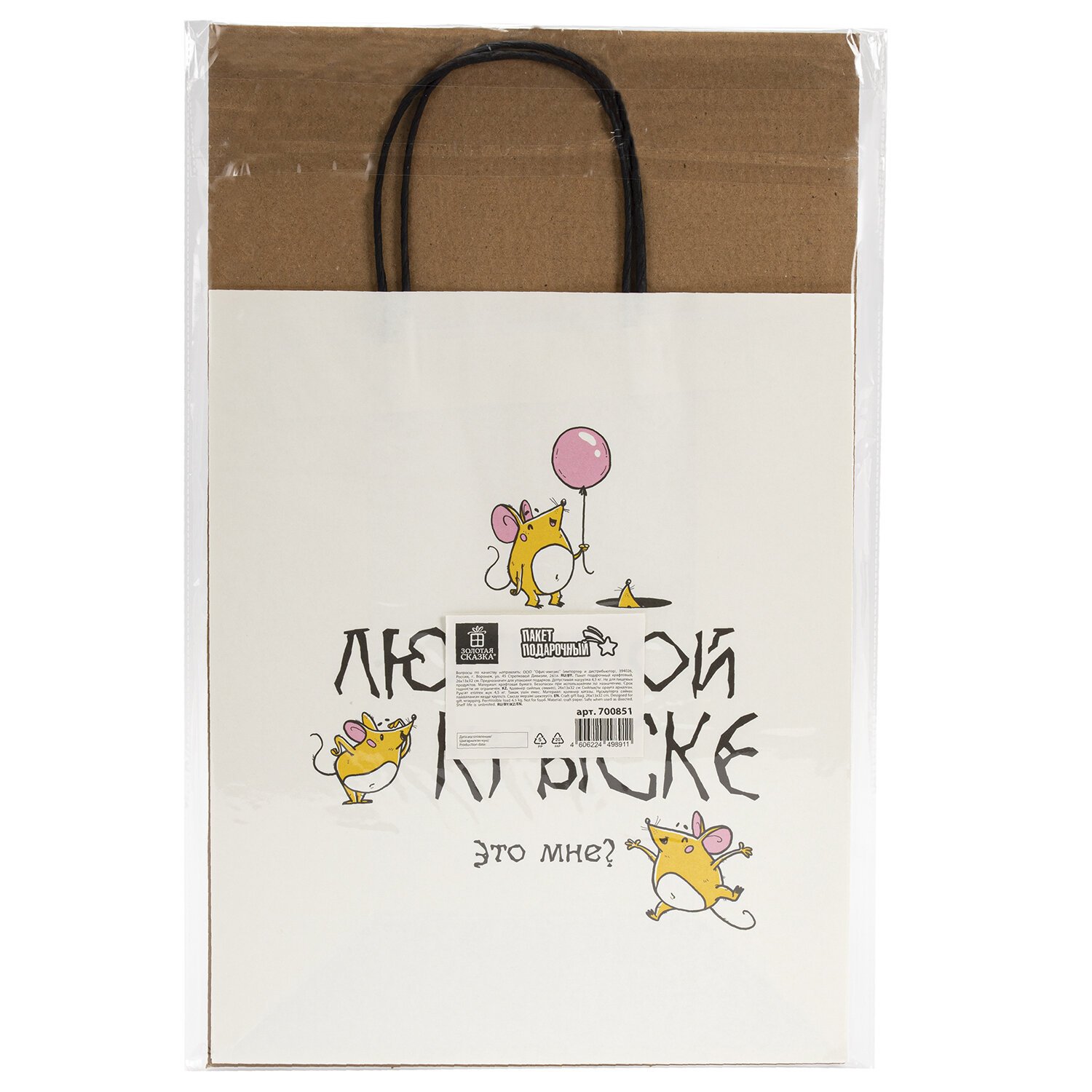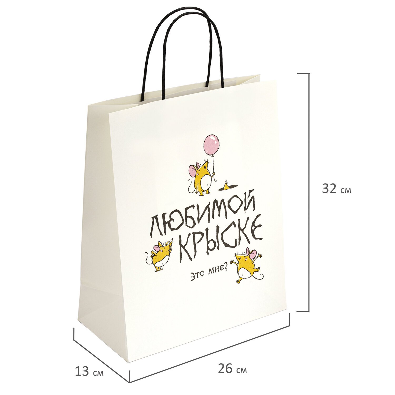 Пакет подарочный (1 штука) 26х13х32см (L) "Любимой крыске", крафт, ЗОЛОТАЯ СКАЗКА, 700851