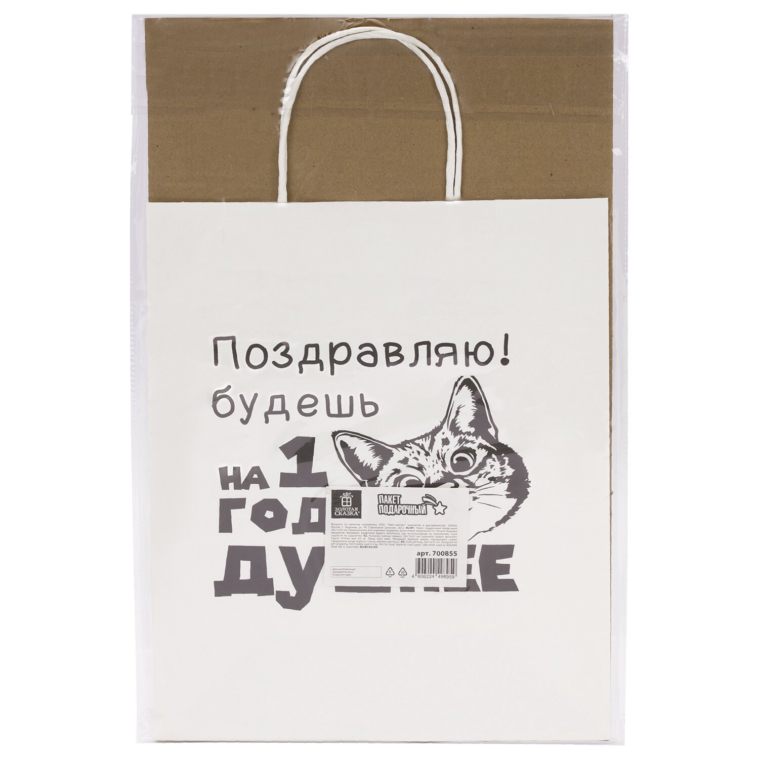 Пакет подарочный (1 штука) 26х13х32см (L) "На год душнее", крафт, ЗОЛОТАЯ СКАЗКА, 700855