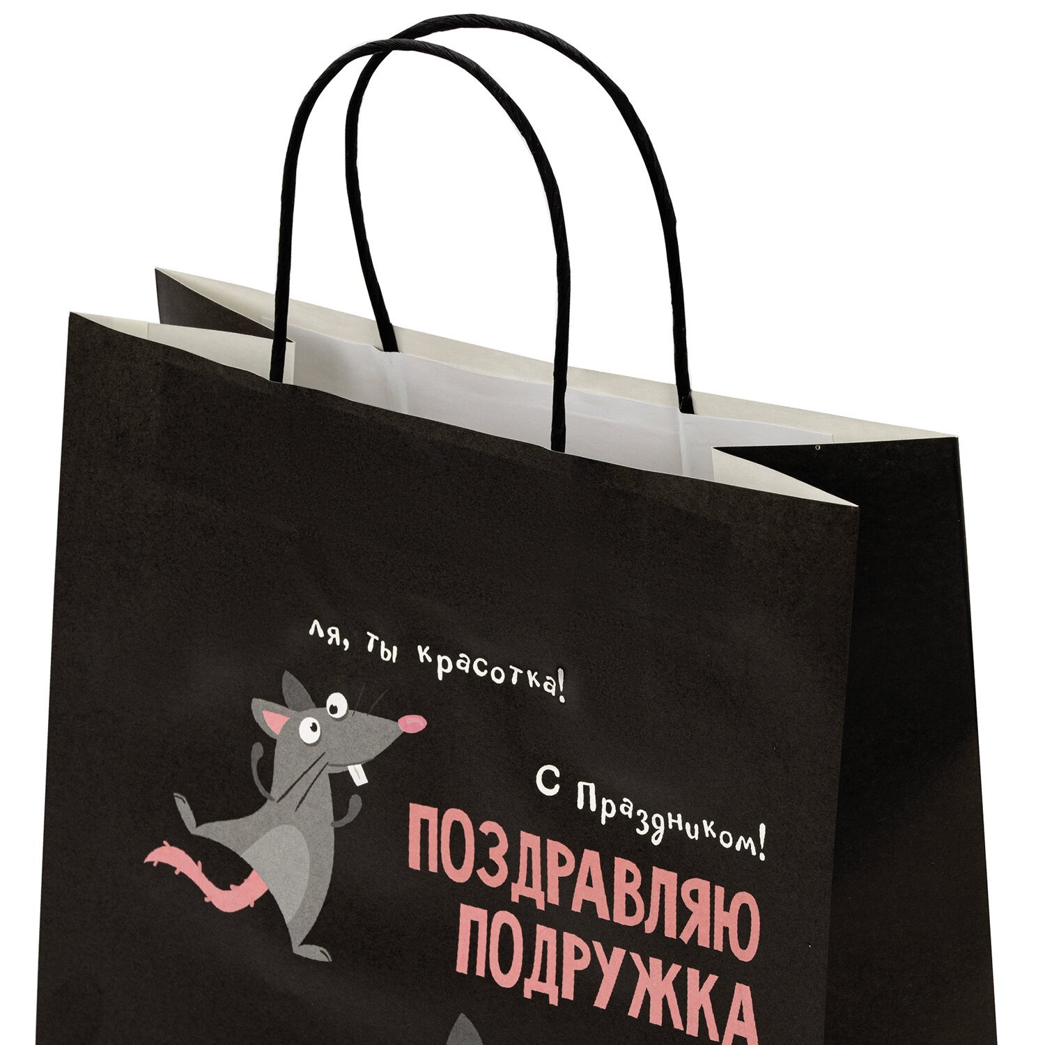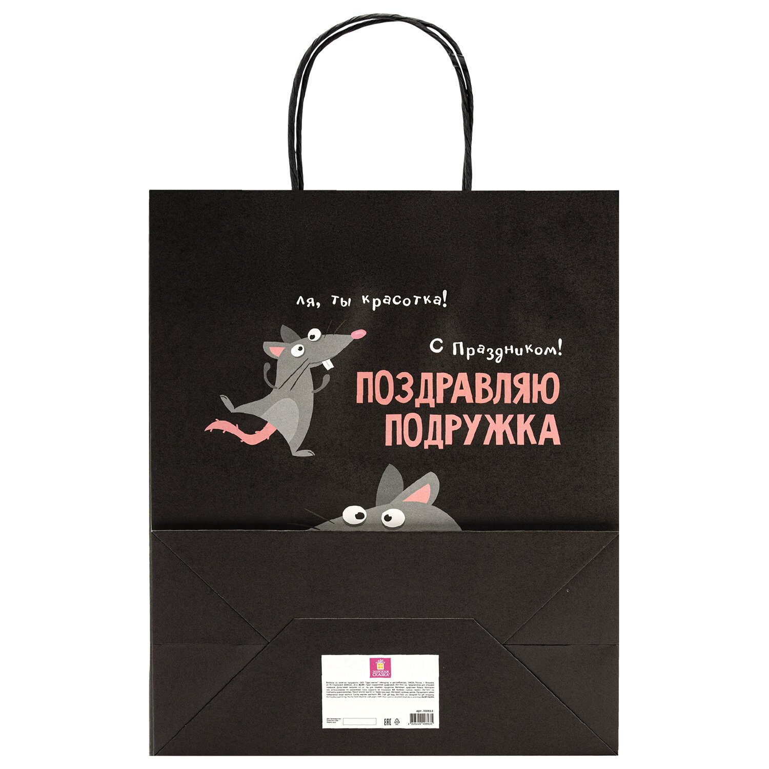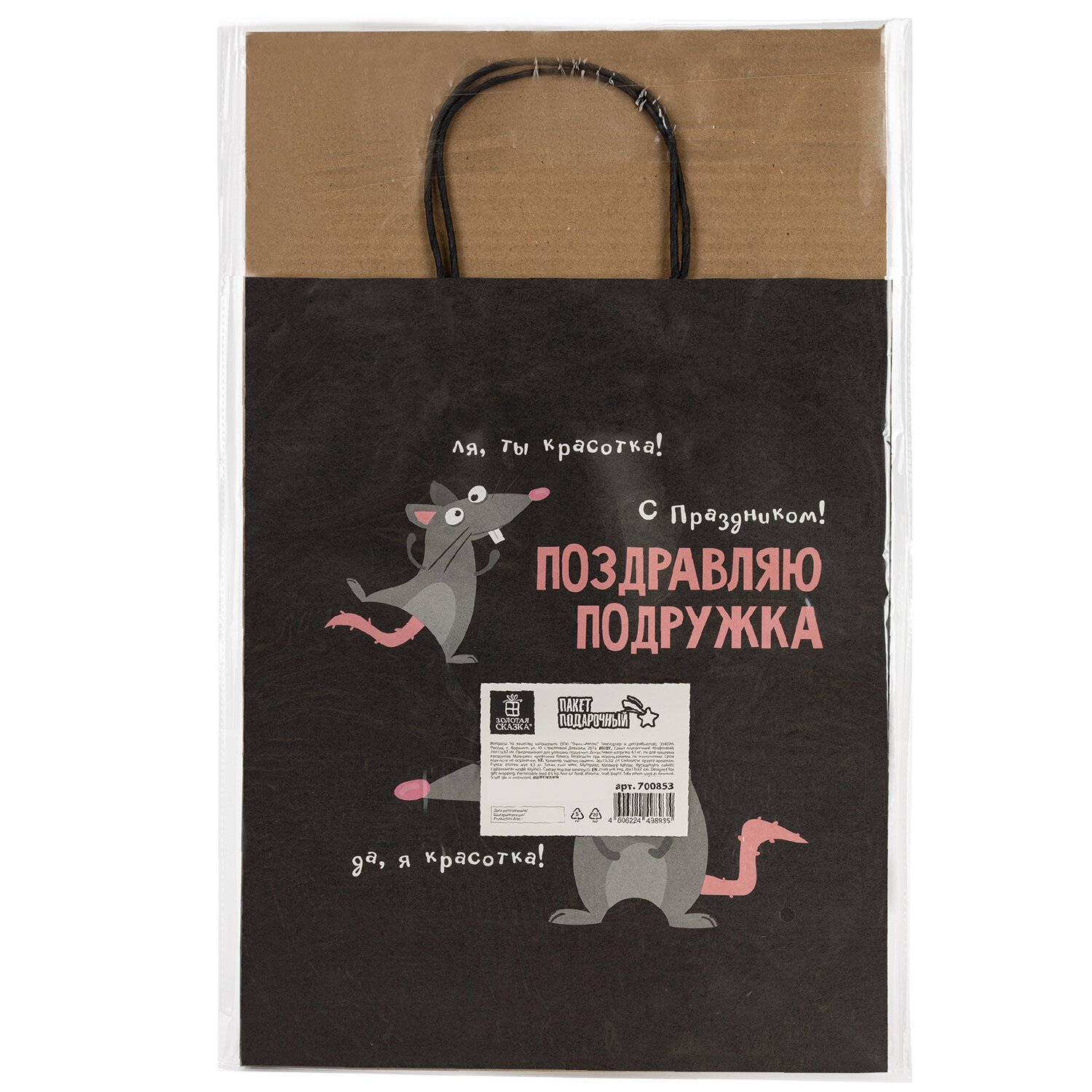 Пакет подарочный (1 штука) 26х13х32см (L) "Подружке", крафт, ЗОЛОТАЯ СКАЗКА, 700853