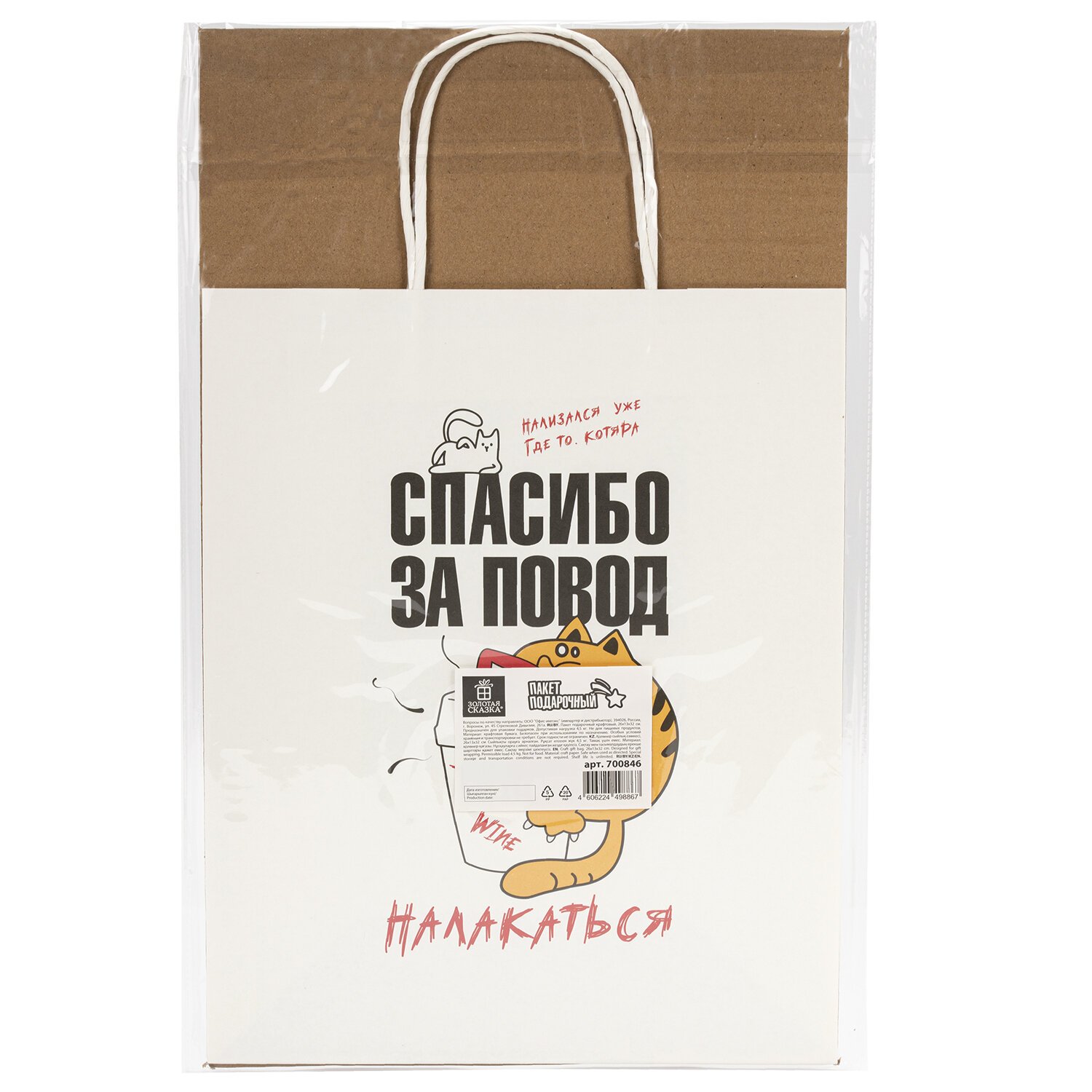 Пакет подарочный (1 штука) 26х13х32см (L) "Повод налакаться", крафт, ЗОЛОТАЯ СКАЗКА, 700846