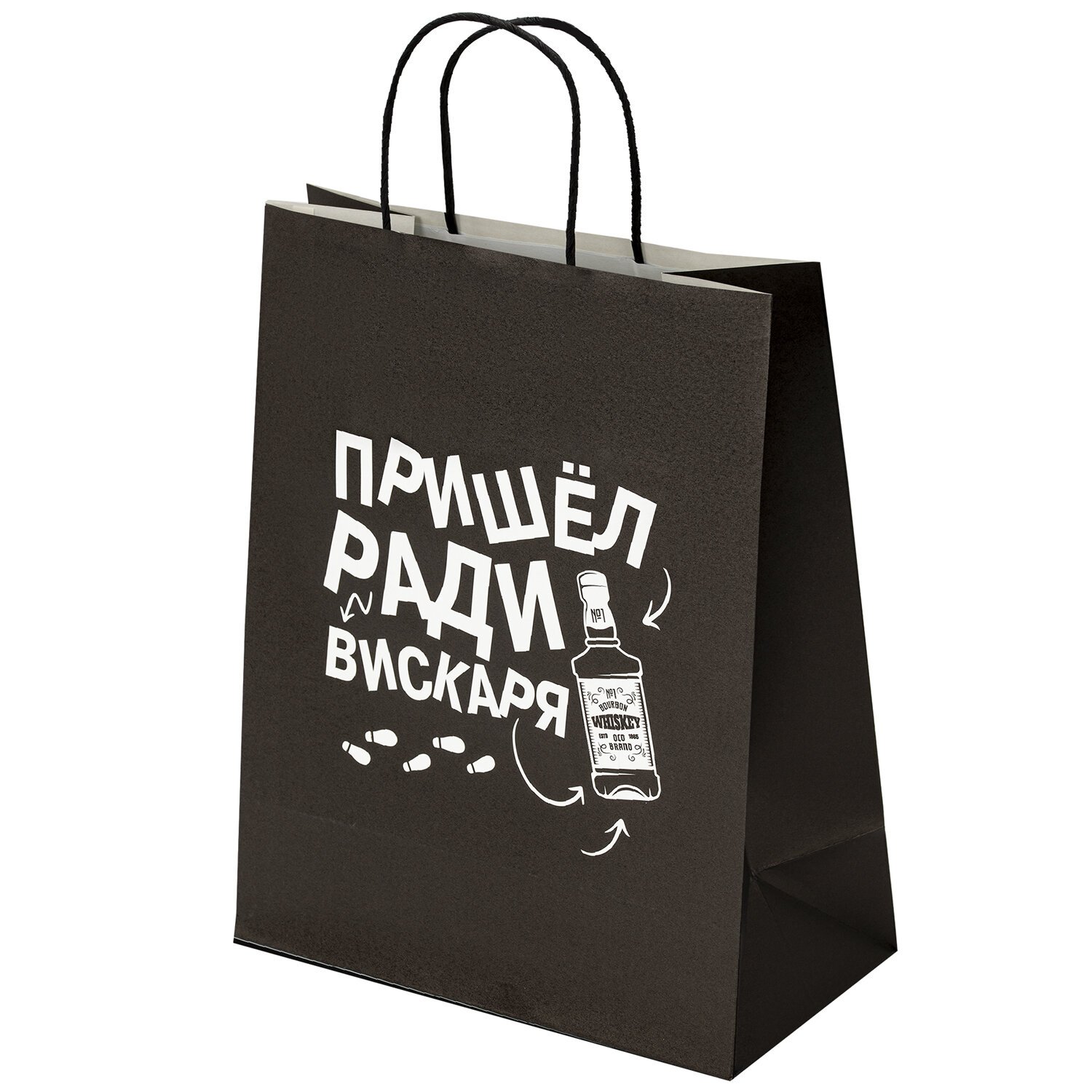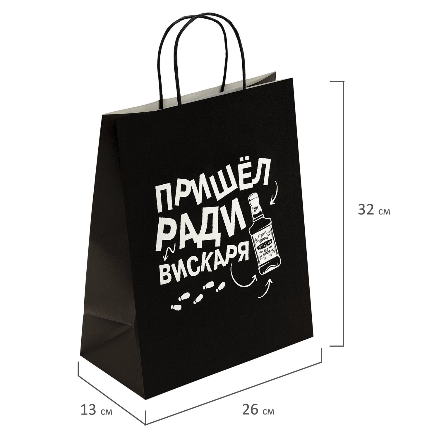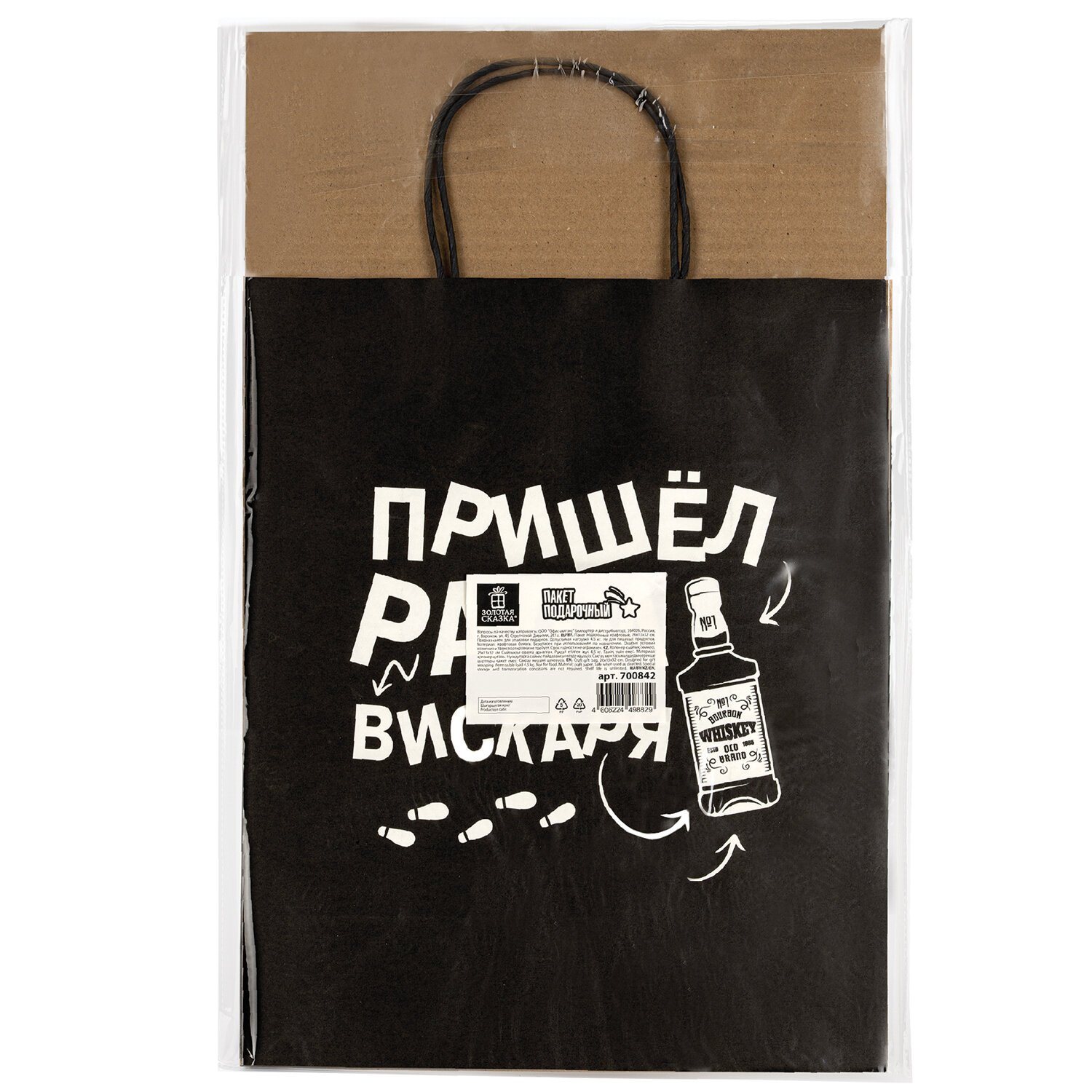 Пакет подарочный (1 штука) 26х13х32см (L) "Пришел ради вискаря!", крафт, ЗОЛОТАЯ СКАЗКА, 700842