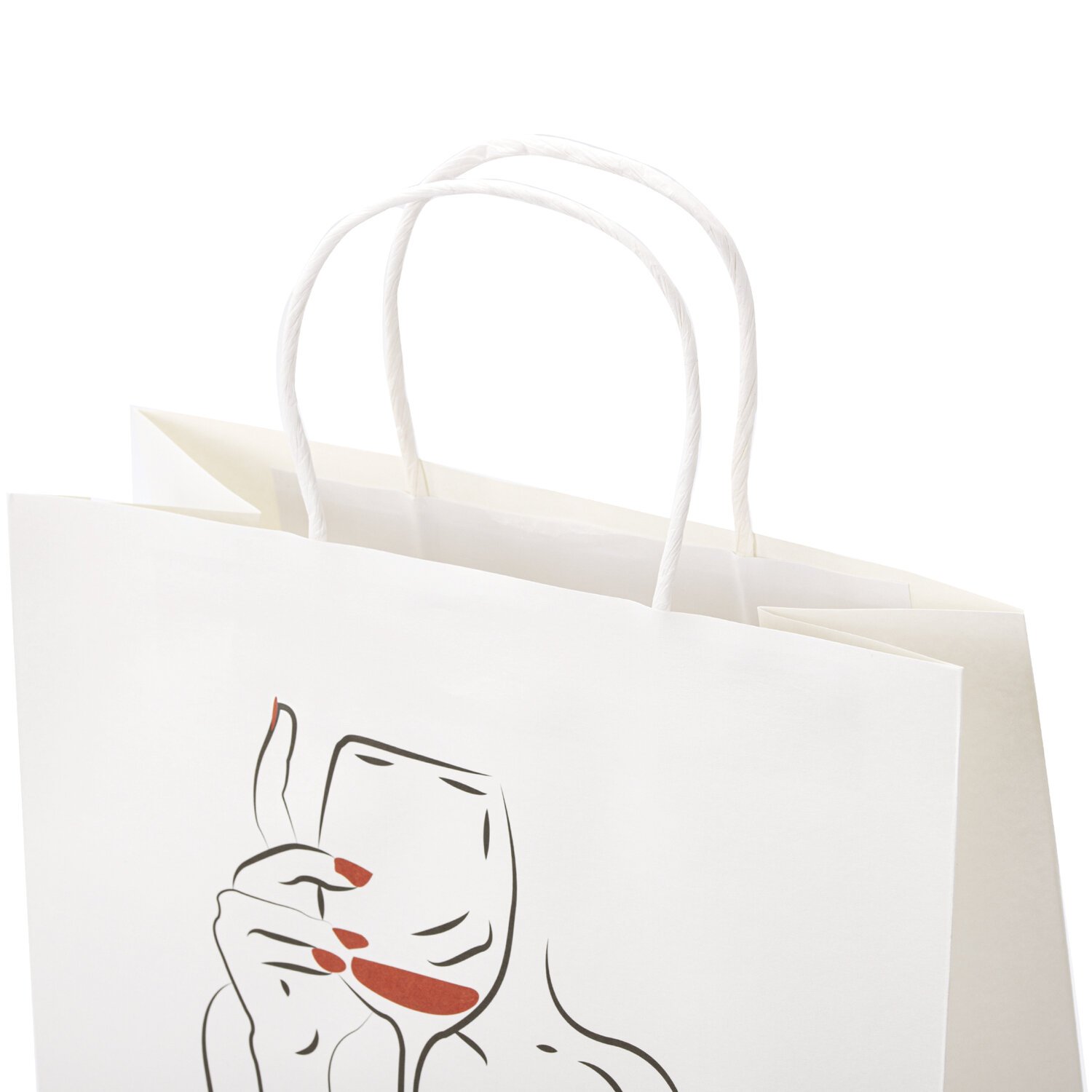 Удобные плетеные ручки обеспечивают комфортное ношение, добавляя элегантности и стиля вашему подарку.