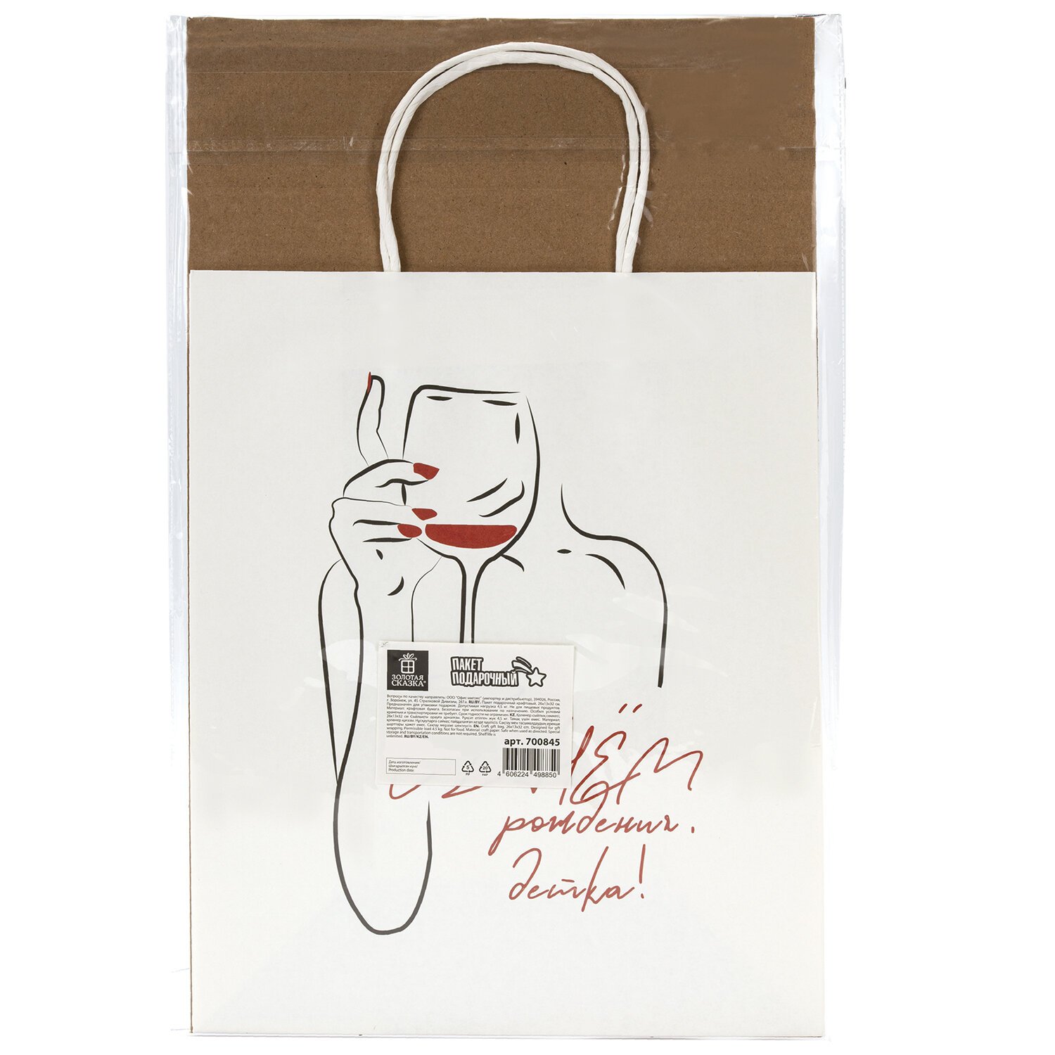 Пакет подарочный (1 штука) 26х13х32см (L) "Повод налакаться", крафт, ЗОЛОТАЯ СКАЗКА, 700846
