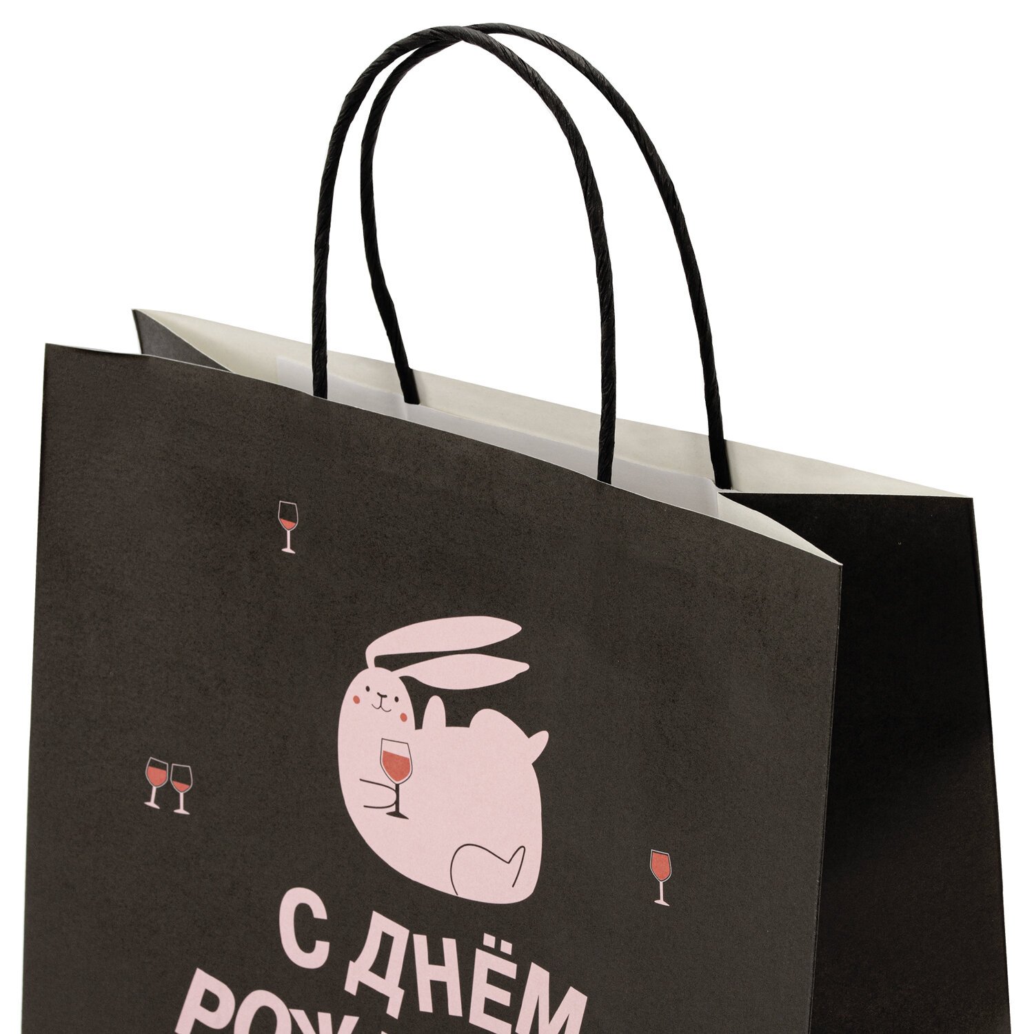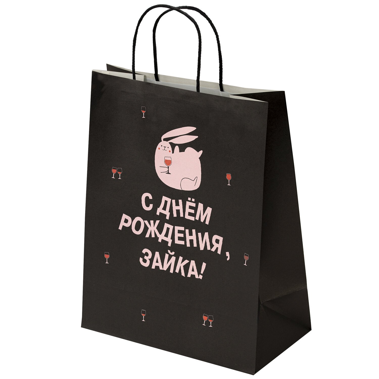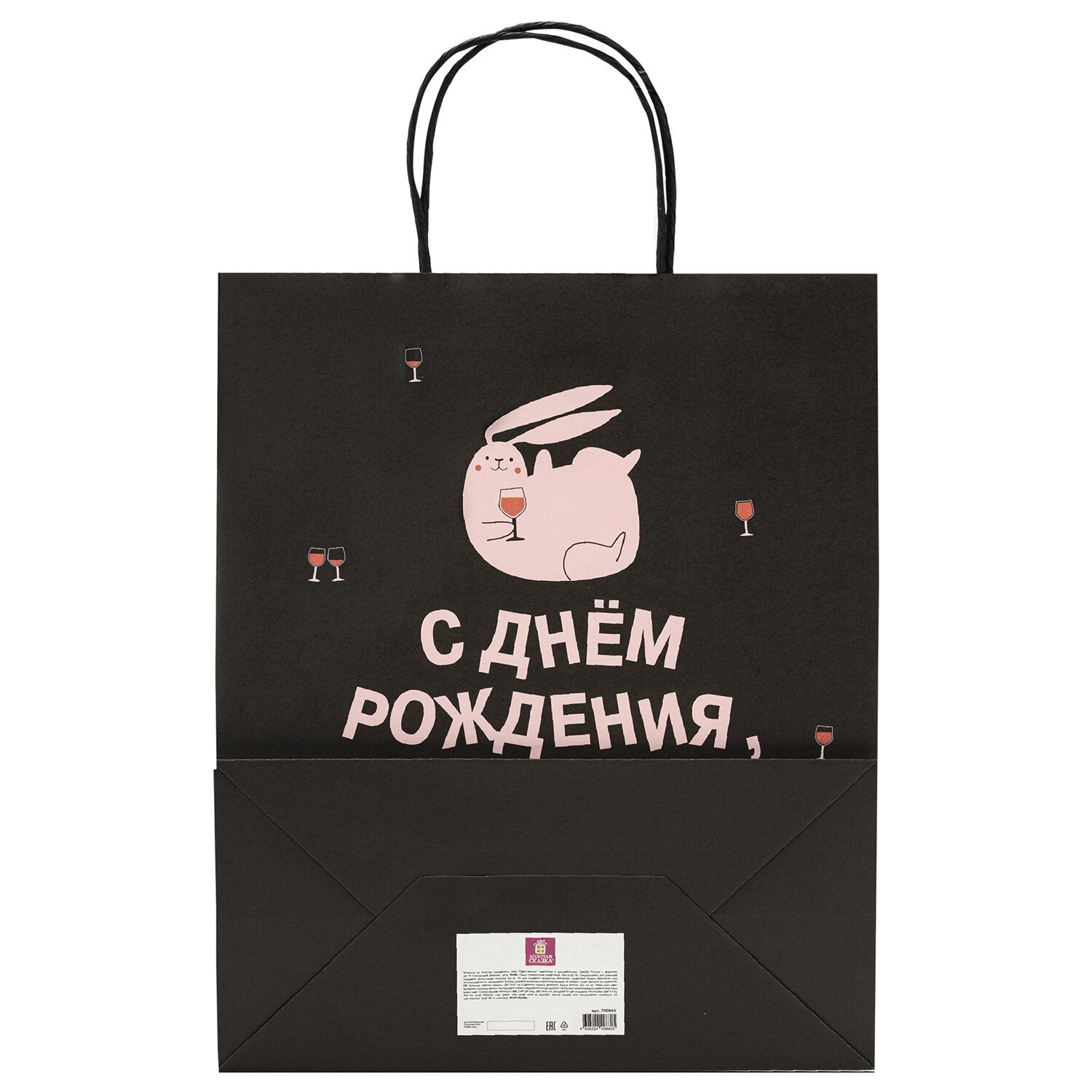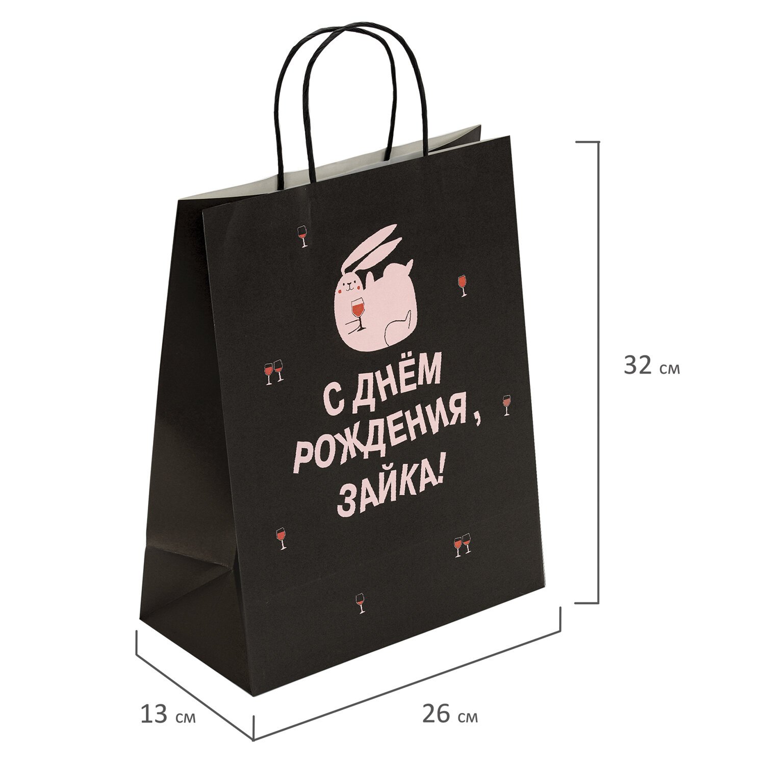 Пакет подарочный (1 штука) 26х13х32см (L) "С ДР, зайка!", крафт, ЗОЛОТАЯ СКАЗКА, 700840
