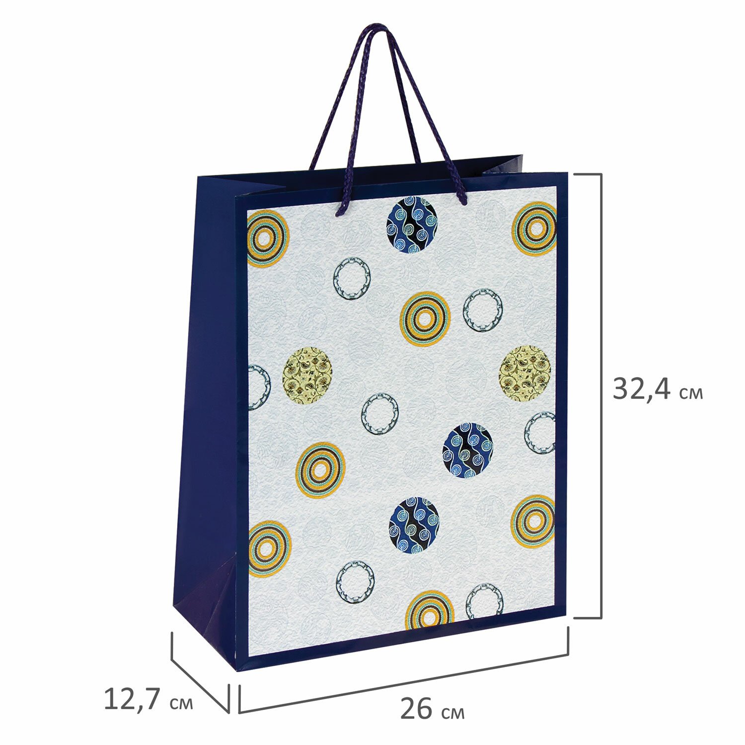 Пакет подарочный (1 штука) 26x13x32 см, ЗОЛОТАЯ СКАЗКА "Кольца и круги", ламинированный, 606602