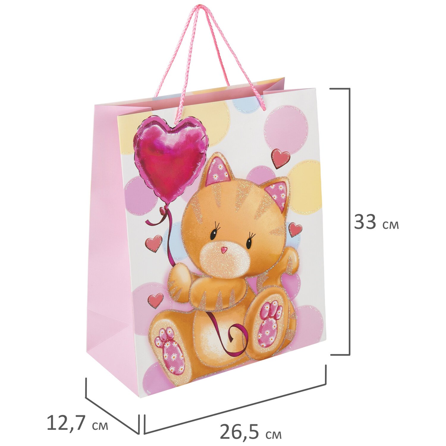 Пакет подарочный (1 штука) 26x13x32 см, ЗОЛОТАЯ СКАЗКА "Lovely Kitty", глиттер, белый/розовый, 608242