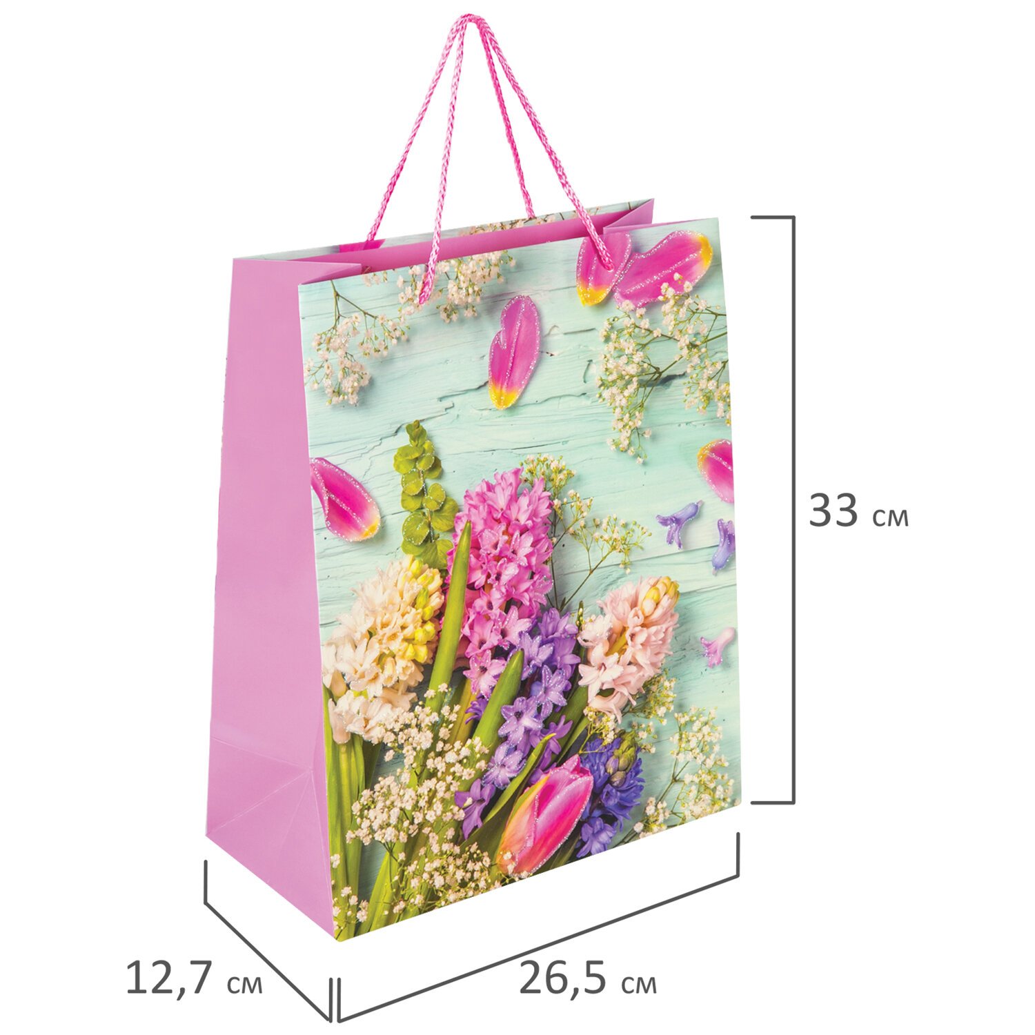 Пакет подарочный (1 штука) 26x13x32 см, ЗОЛОТАЯ СКАЗКА "Spring Flowers", глиттер, розовый, 608247