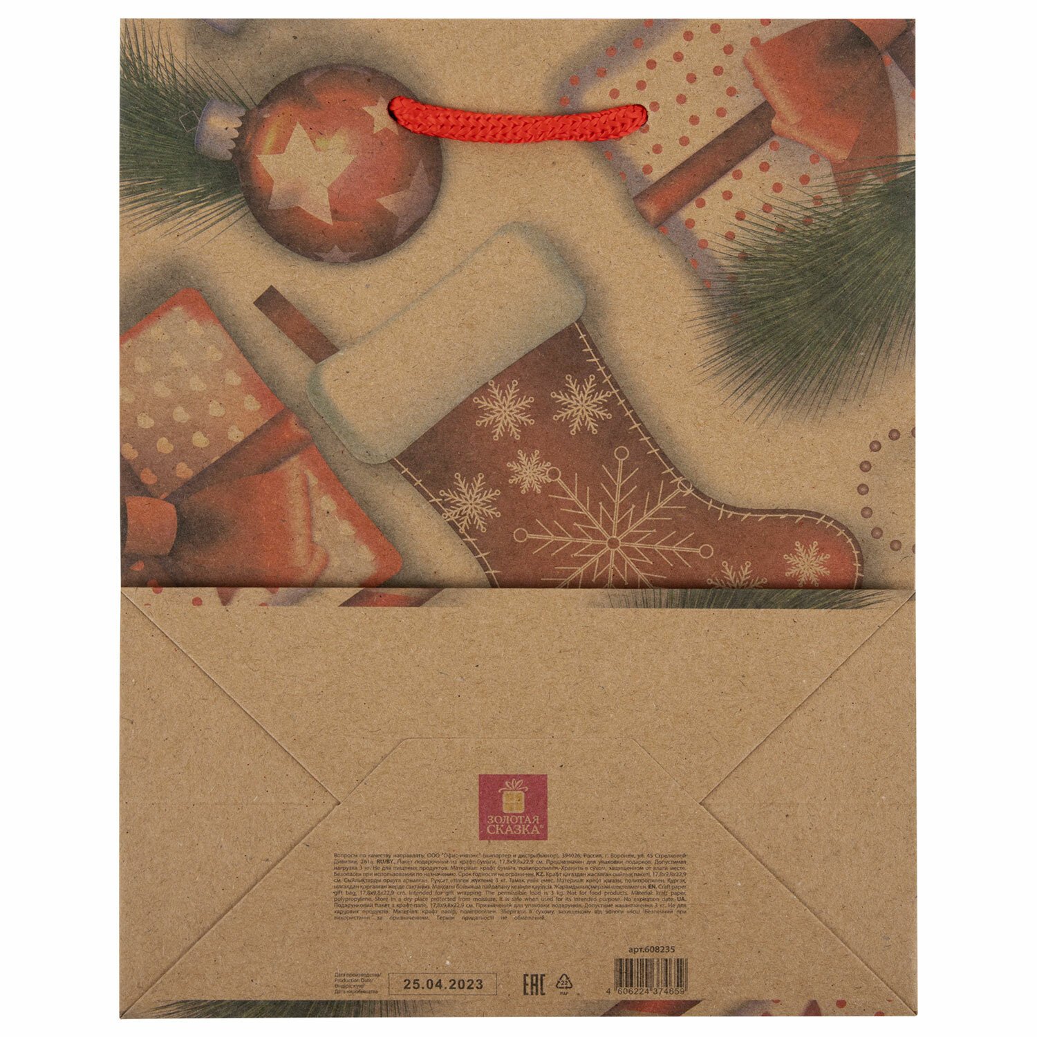 Подарочный новогодний пакет "Christmas Kraft" ЗОЛОТАЯ СКАЗКА – отличное решение для упаковки любого презента, которое позволит с легкостью и со вкусом оформить выбранный подарок. Изготовлен из крафтовой бумаги с веревочными ручками из полипропилена.