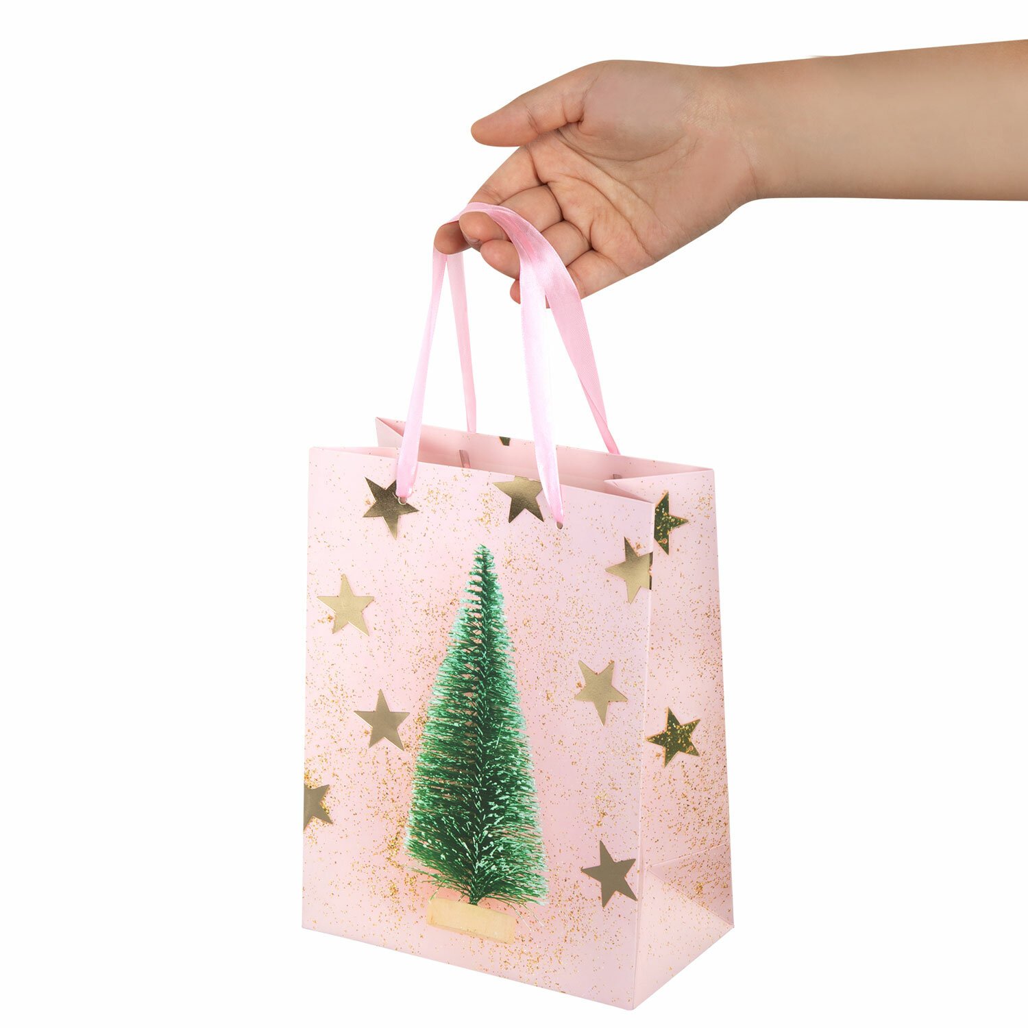 Подарочный новогодний пакет "Pink Ivory" ЗОЛОТАЯ СКАЗКА – отличное решение для упаковки любого презента, которое позволит с легкостью и со вкусом оформить выбранный подарок. Изготовлен из мелованной бумаги с ленточными ручками из полиэстера.