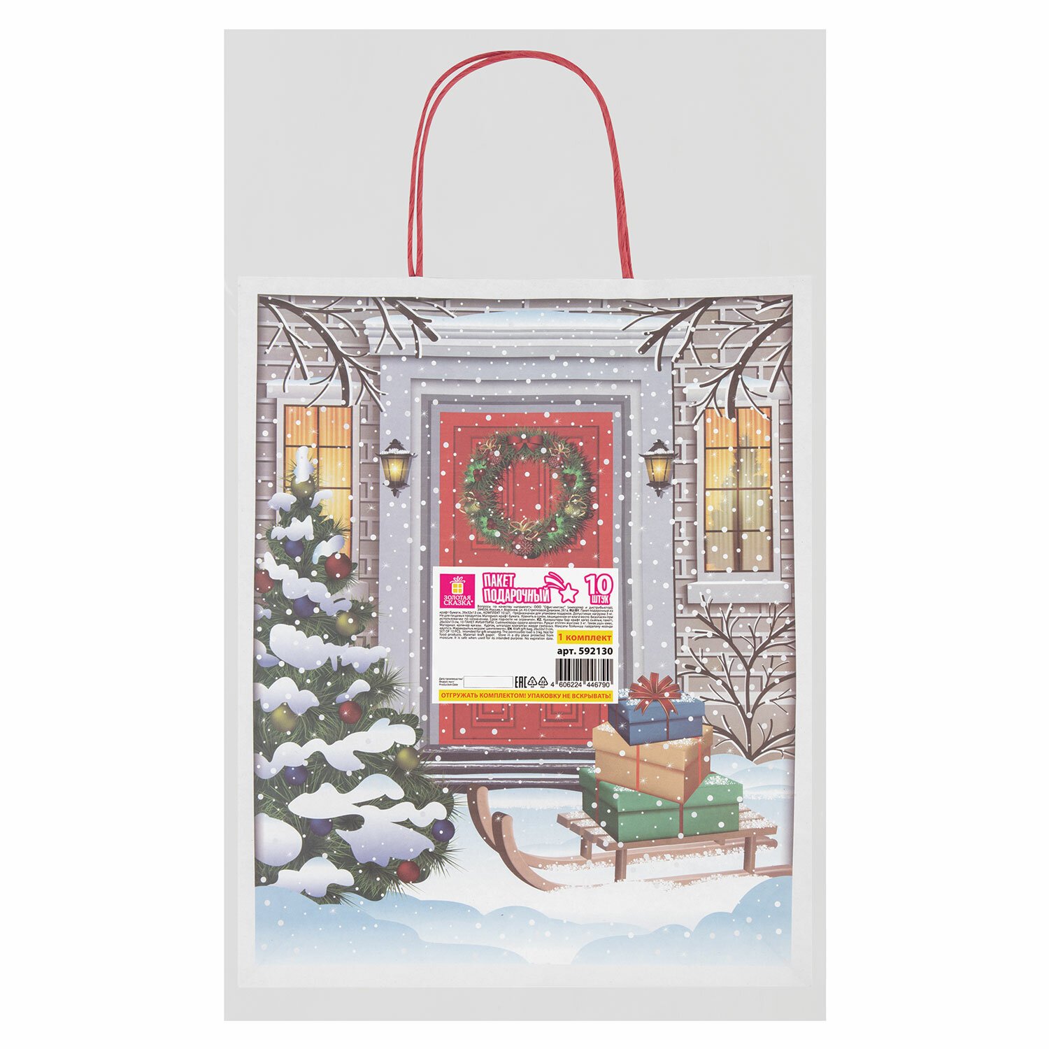 Пакет подарочный КОМПЛЕКТ 10 штук новогодний 26x32x13 см, "Сочельник", ЗОЛОТАЯ СКАЗКА, 592130