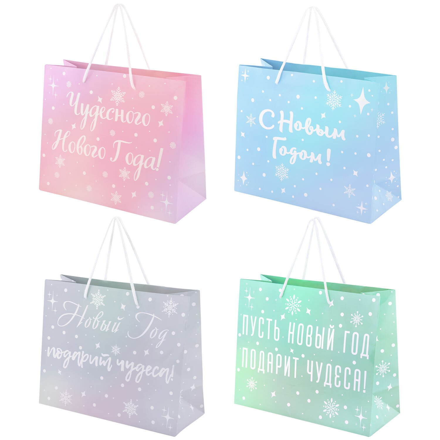 Подарочные новогодние пакеты (НАБОР 4 ШТ) "Сияние" ЗОЛОТАЯ СКАЗКА – отличное решение для упаковки любого презента, которое позволит легко и со вкусом оформить выбранный подарок.