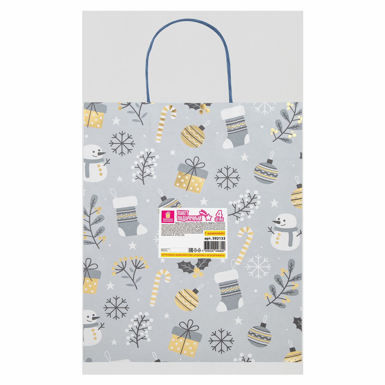 Пакет подарочный НАБОР 4 штуки новогодний 26x32x13 см, "Kraft Large", ЗОЛОТАЯ СКАЗКА, 592133
