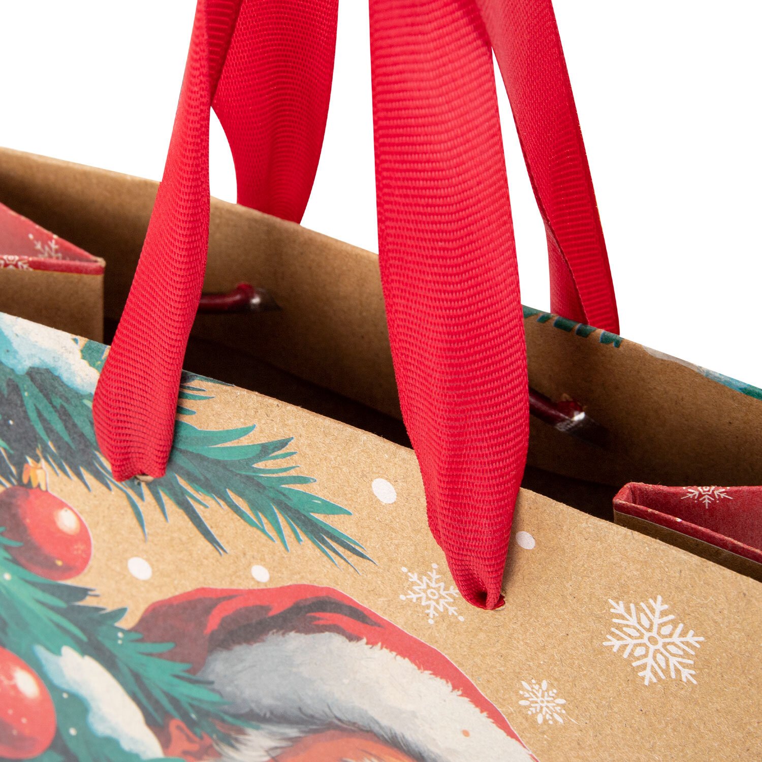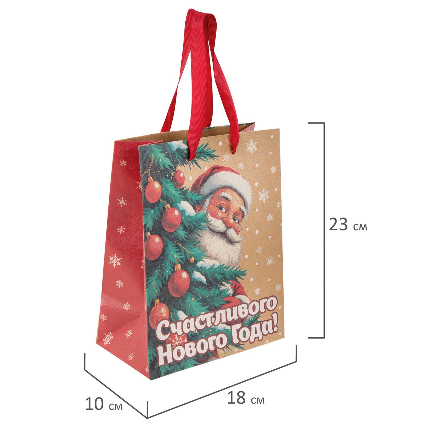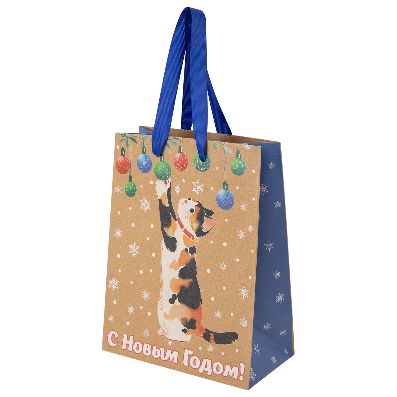 Набор подарочных новогодних пакетов изготовлен из крафт-бумаги, снабжен ленточными ручками из полиэстера. Размер – 18х10х23см. На пакетах изображены иллюстрации в новогодней тематике и поздравительные надписи, которые точно вызовут улыбку.