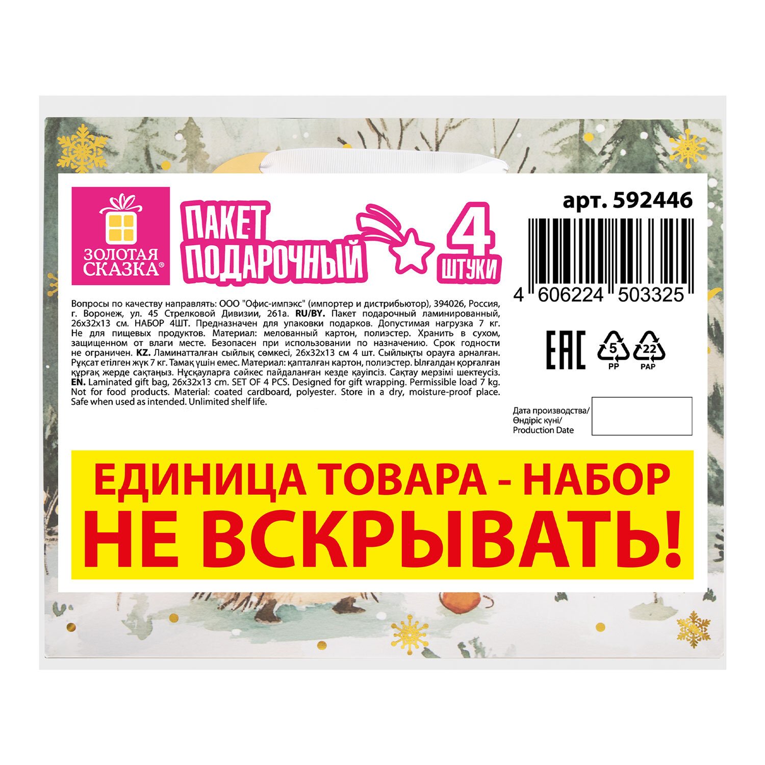 Пакет подарочный НАБОР 4шт новогодний, 26х13х32см, "Акварельная зима", фольга, ЗОЛОТАЯ СКАЗКА, 592446