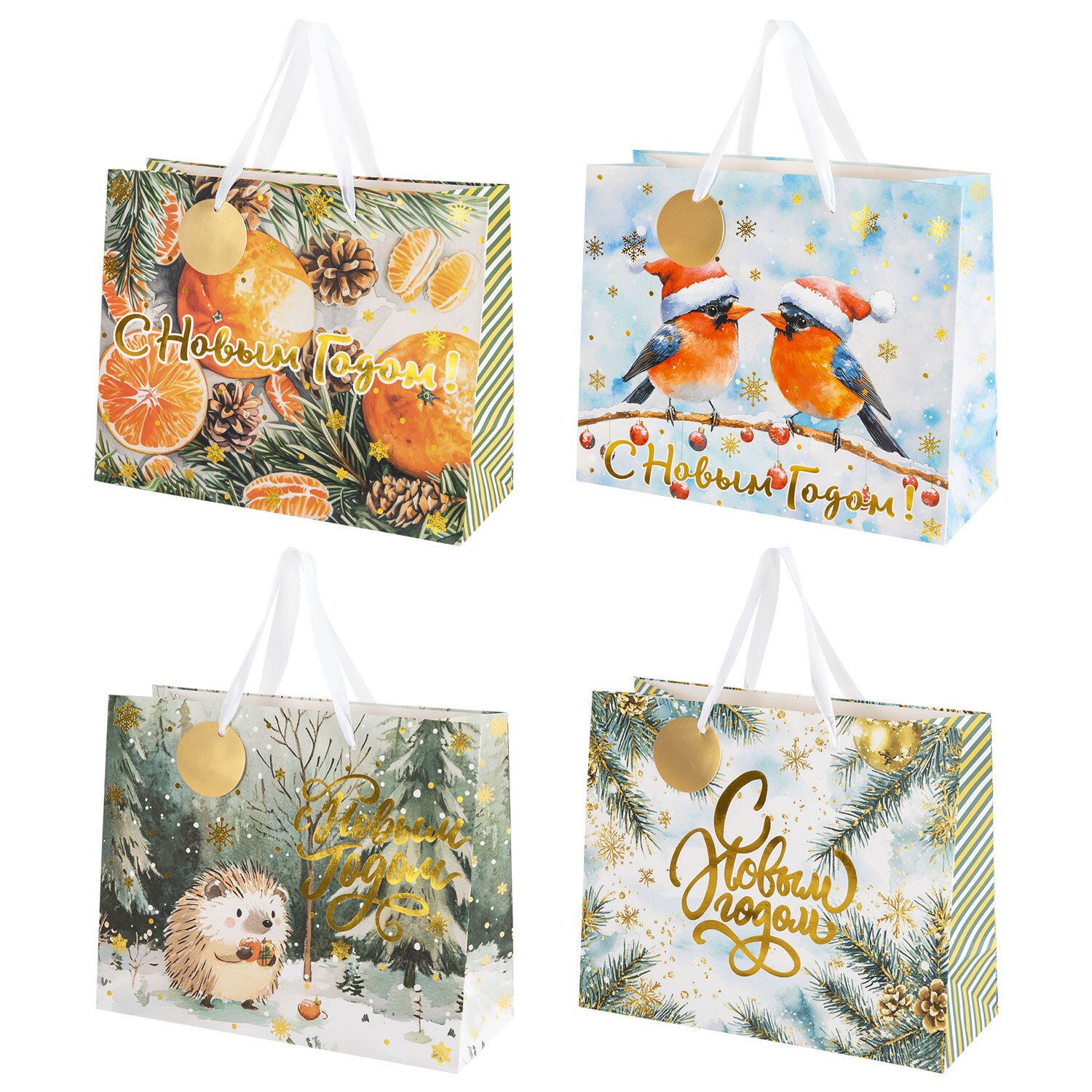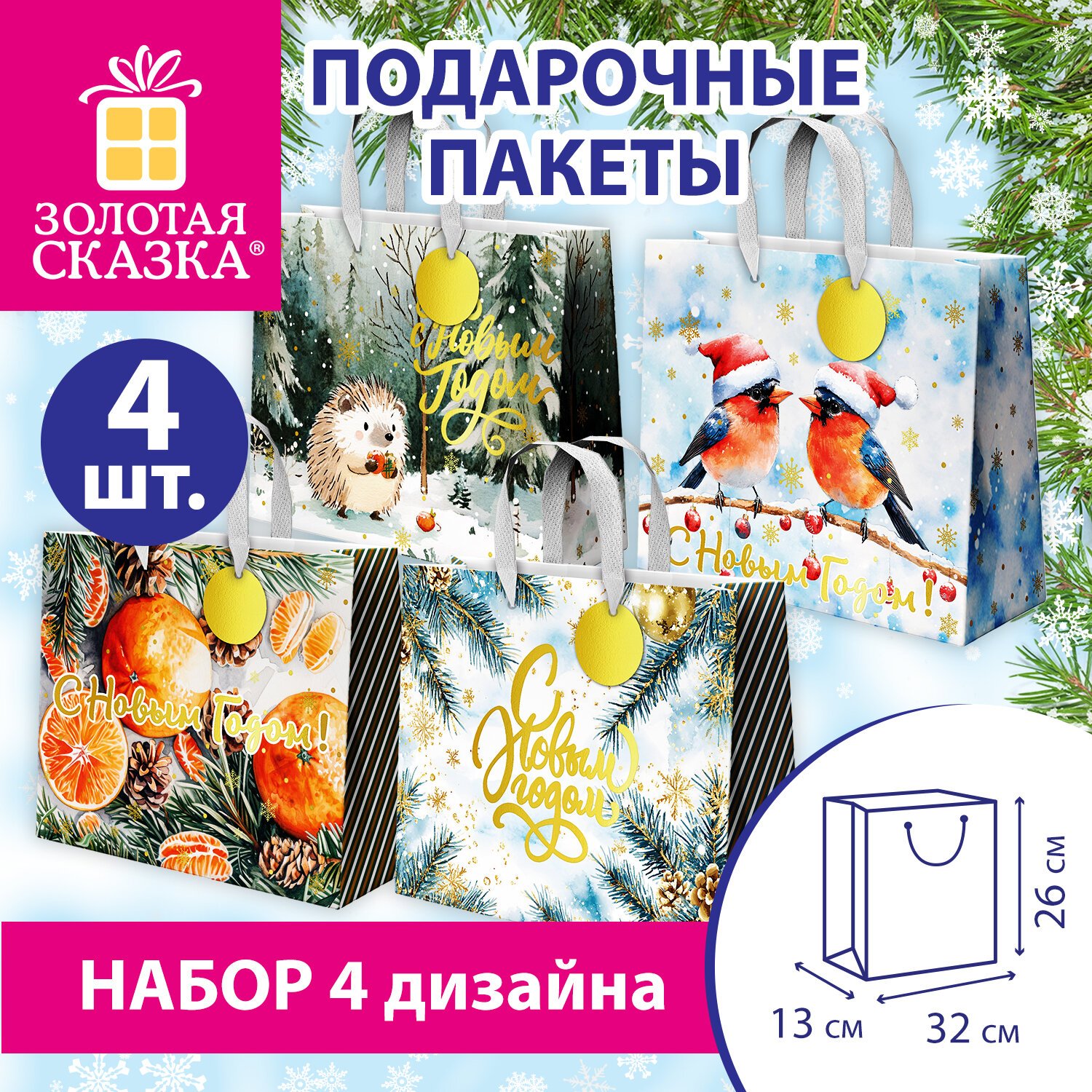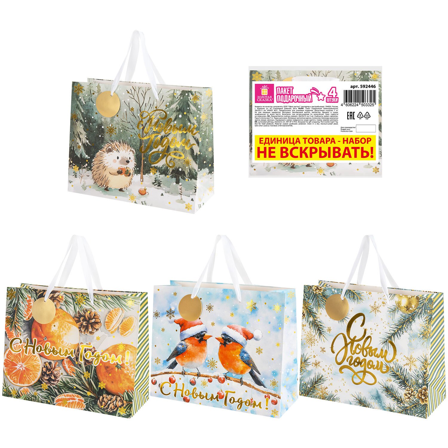 Подарочный новогодний пакет (НАБОР 4 штуки) "Акварельная зима" ЗОЛОТАЯ СКАЗКА – отличное решение для упаковки любого презента, которое позволит легко и со вкусом оформить выбранный подарок.