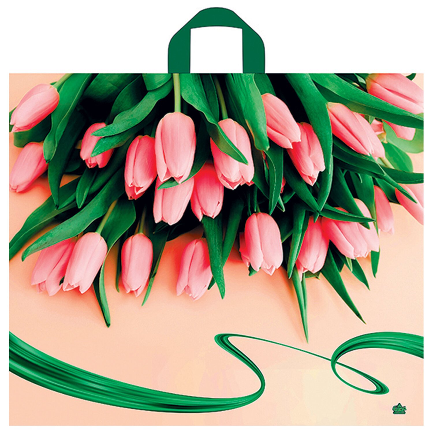 Пакет с петлевой ручкой ПВД, 50х60см, "Райские тюльпаны", 60мкм, ШК9334, н00242805