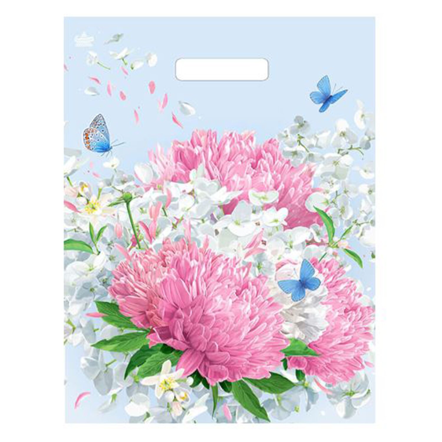 Пакет с вырубной ручкой ПВД, 40х31 см, "Пионы", 60 мкм, н00117595