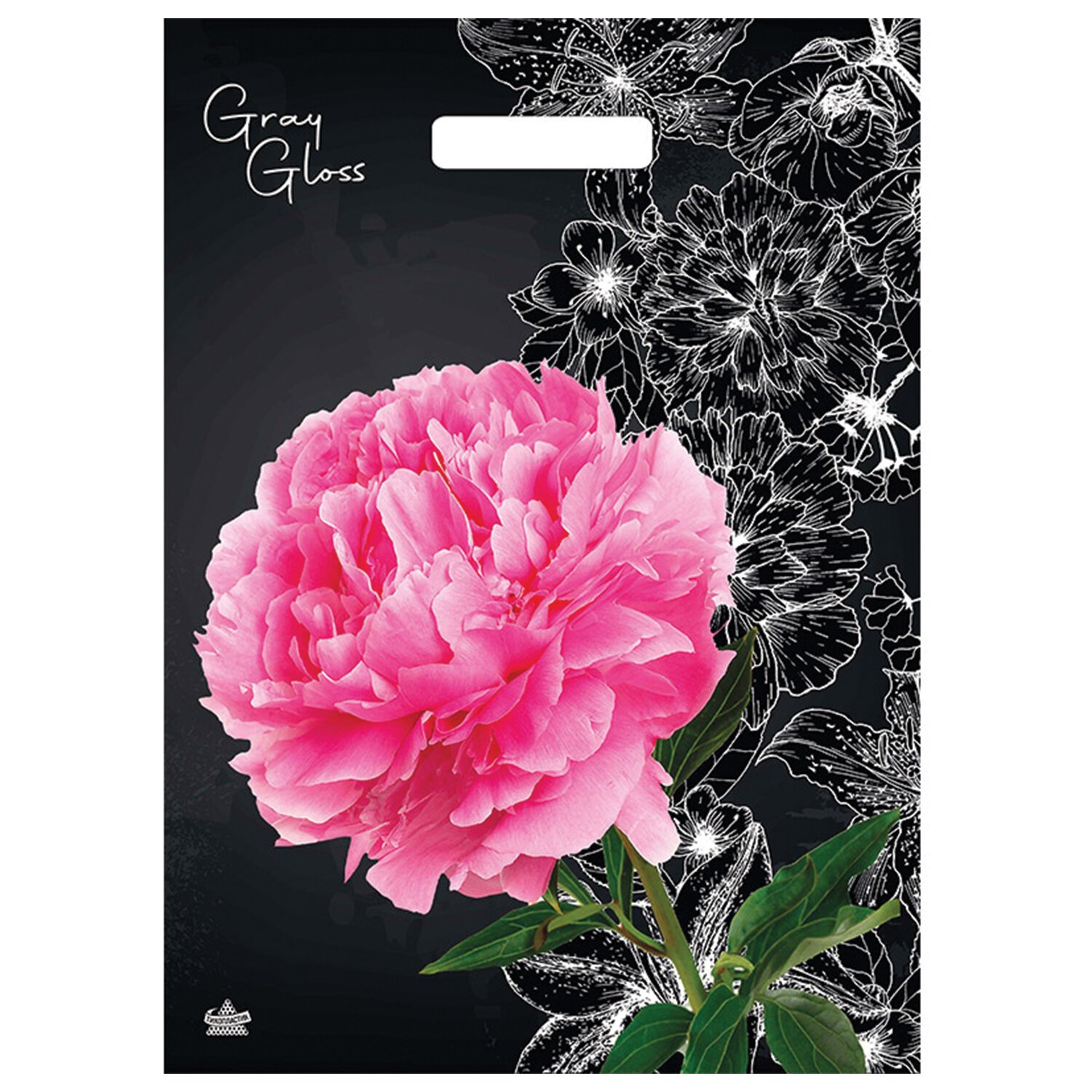 Пакет с вырубной ручкой ПВД, 43х31,5см, "Грэй Глосс Пион", 50мкм, ШК8375, н00212038
