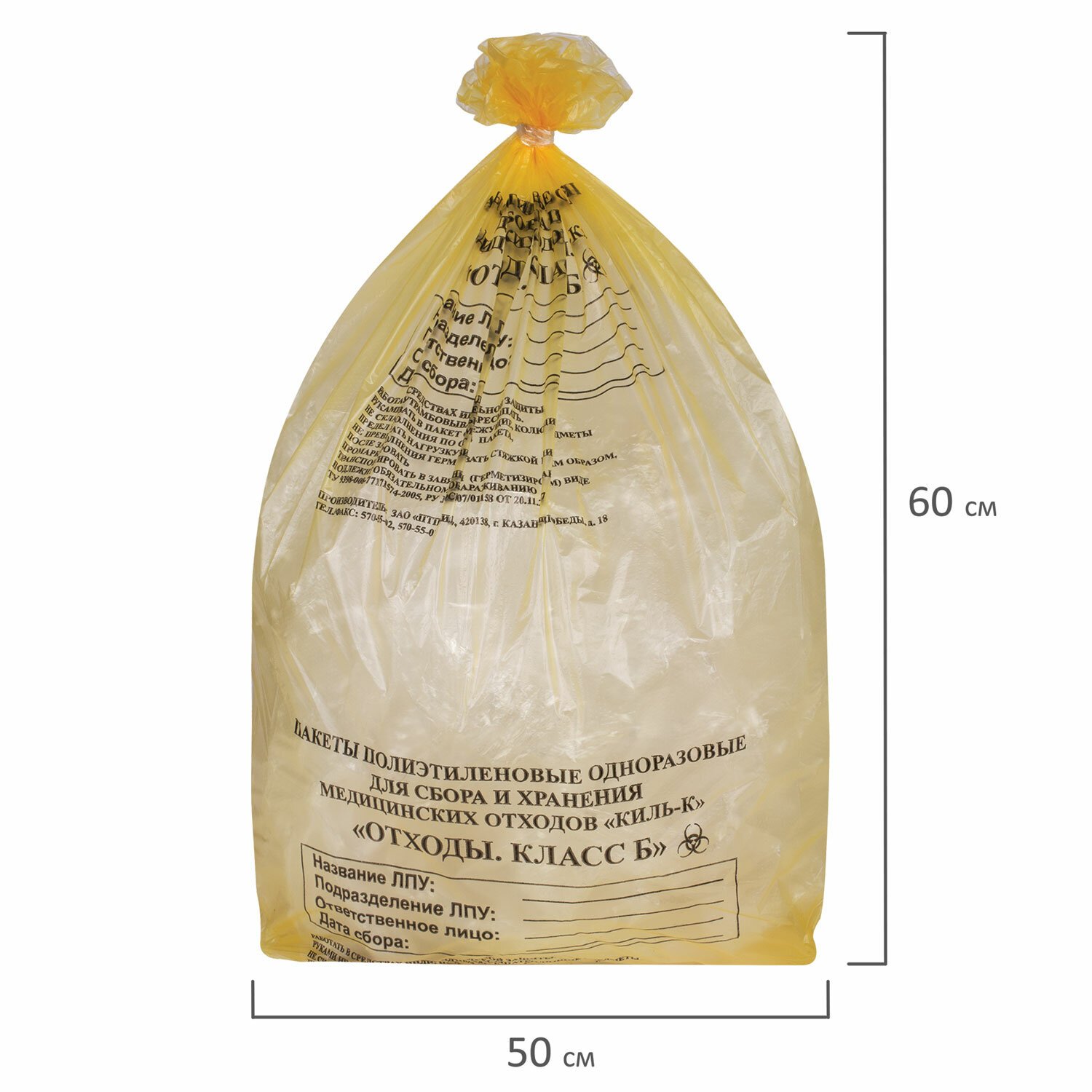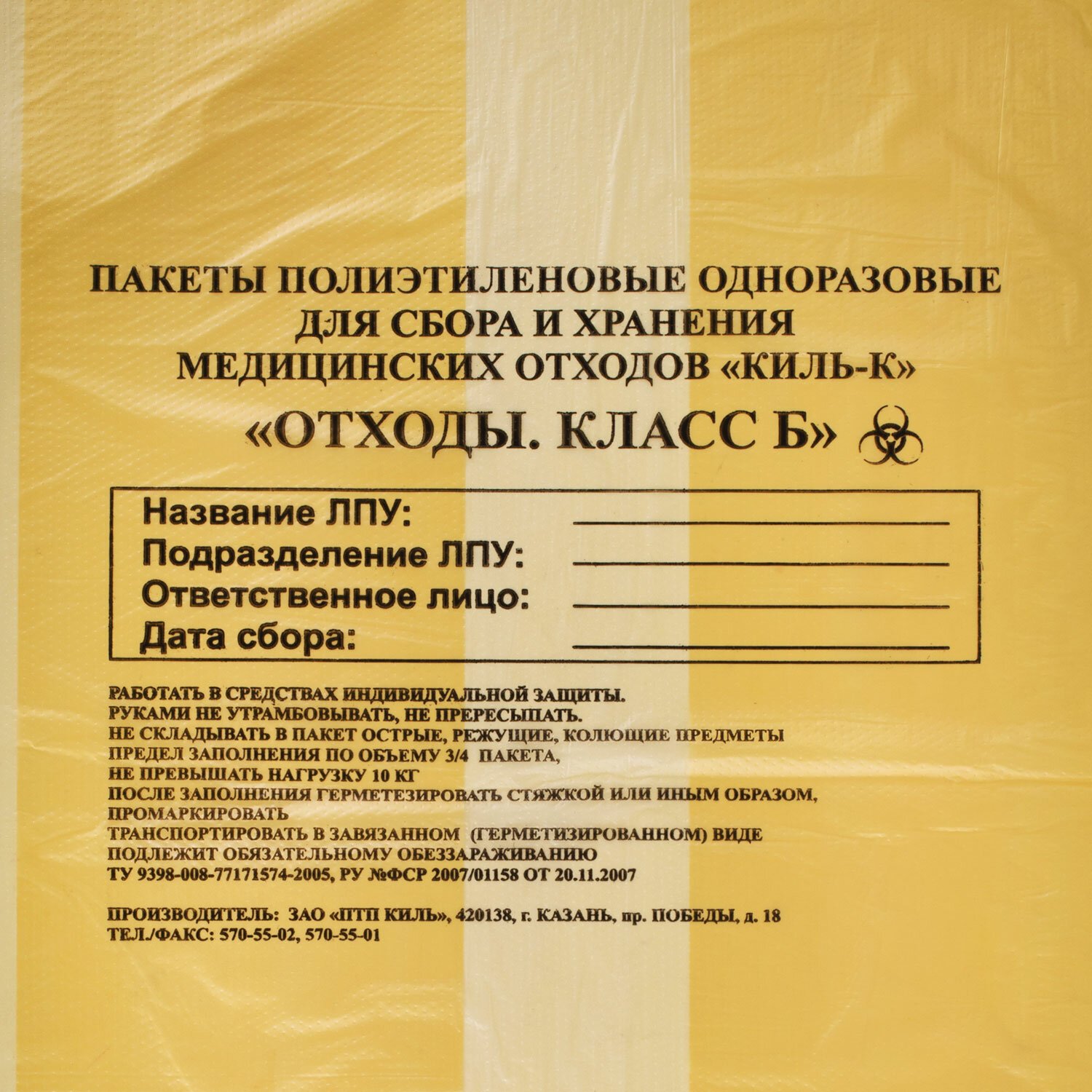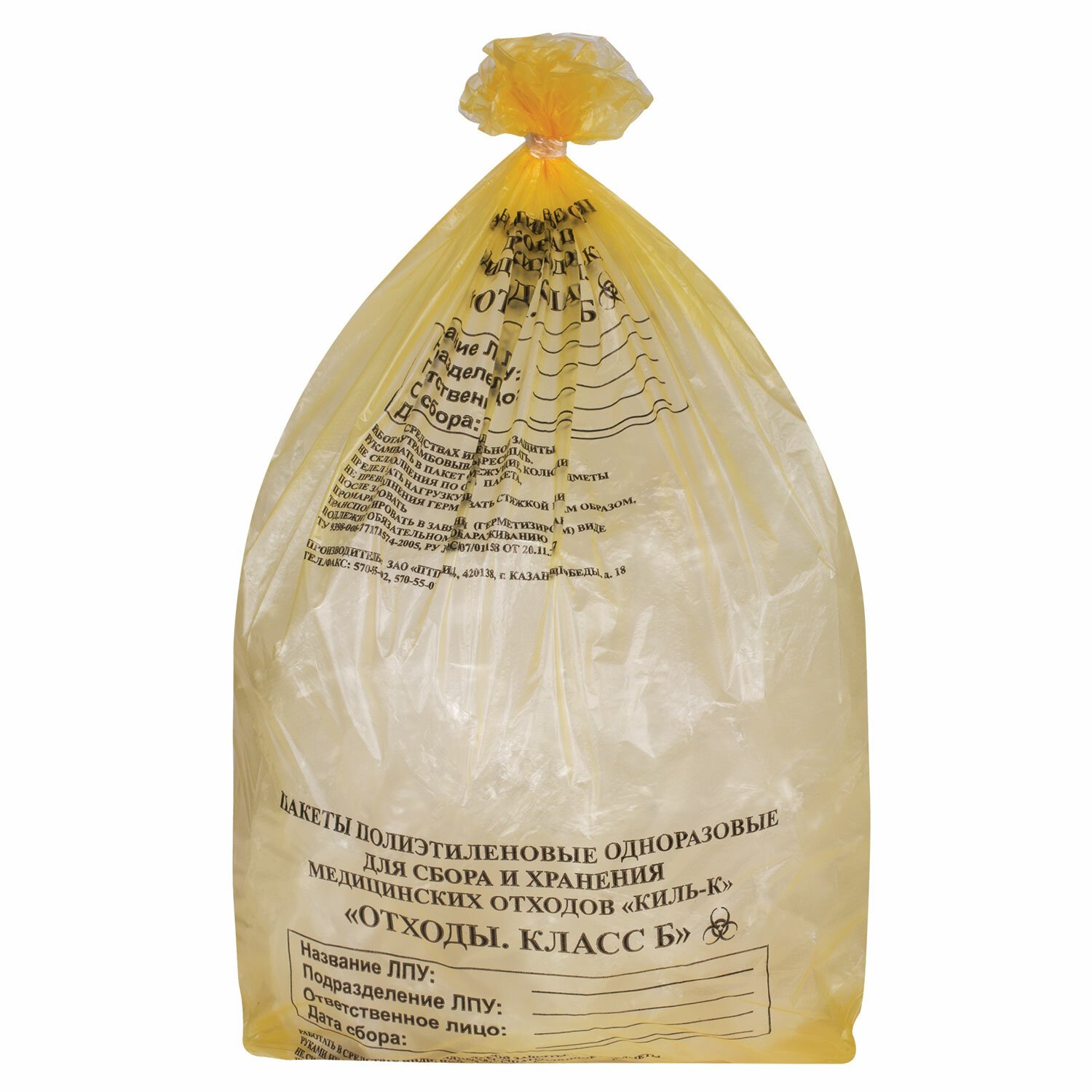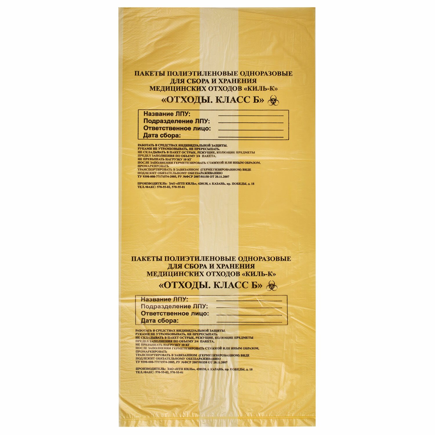 Пакеты для медицинских отходов КОМПЛЕКТ 100 шт., класс Б (желтые) 30 л, 50х60 см, 10 мкм, ПТП "Киль"