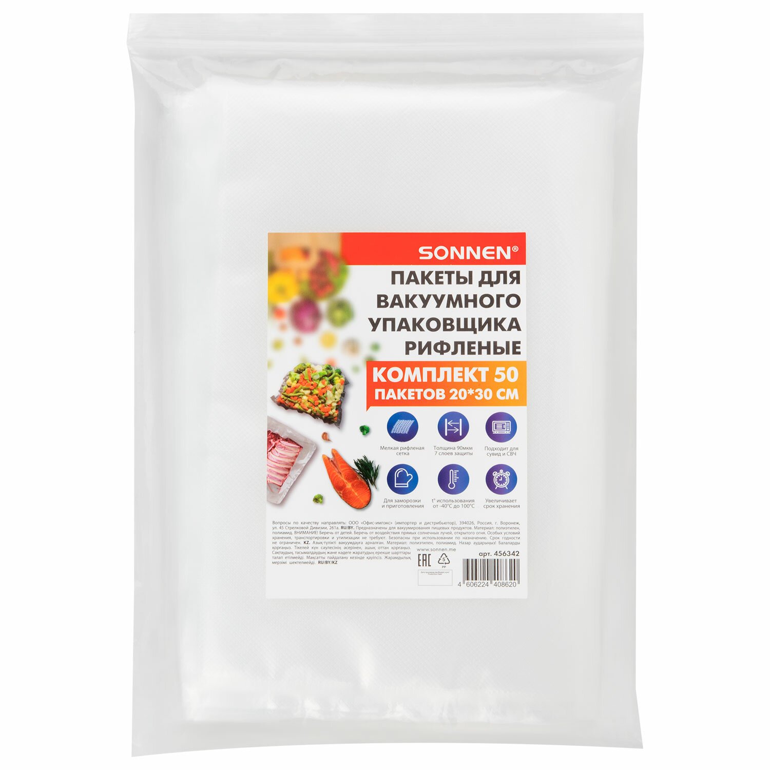 Пакеты для вакуумного упаковщика рифленые 20х30 см, КОМПЛЕКТ 50 шт., SONNEN, максимальный вакуум, 456342