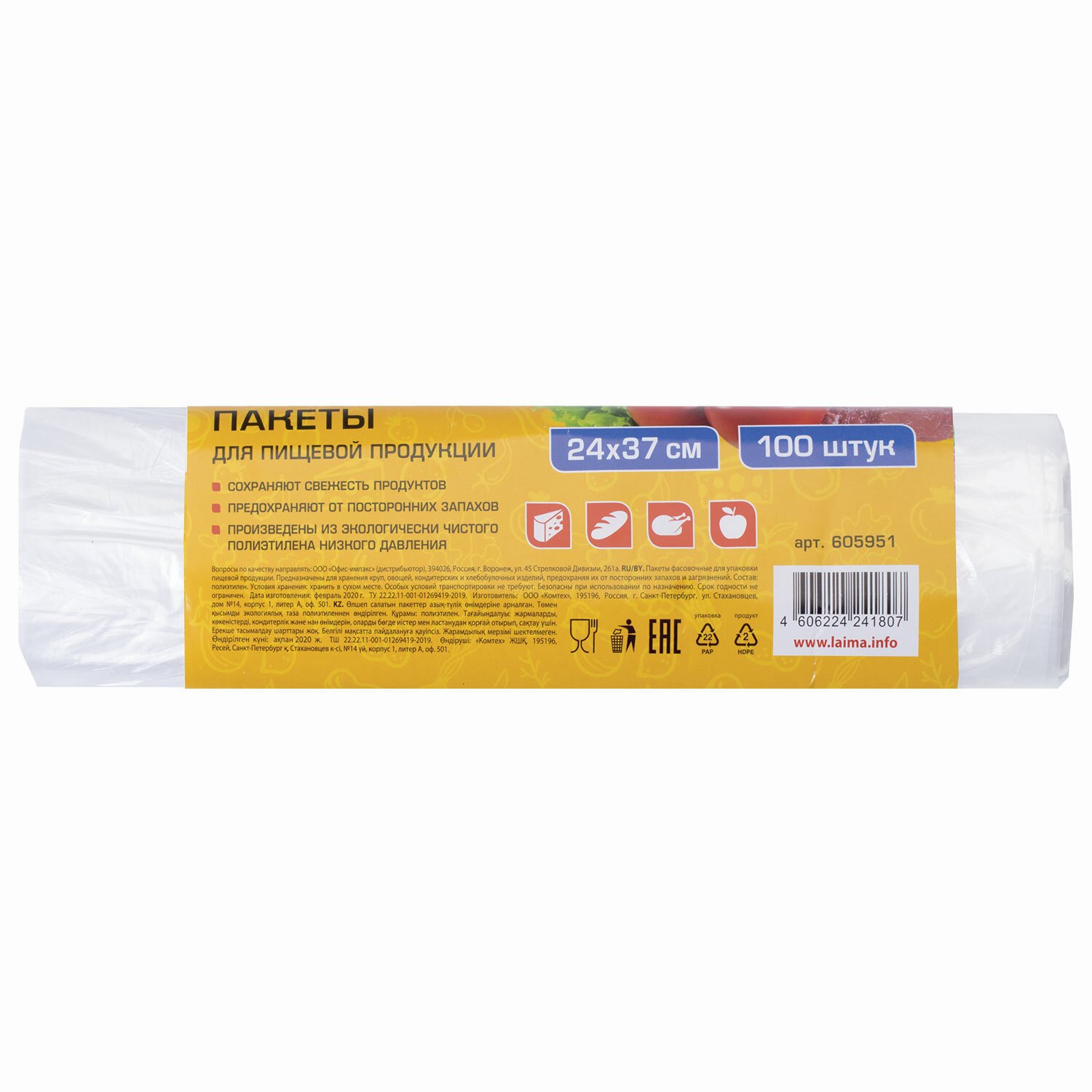 Пакеты фасовочные 24х37 см КОМПЛЕКТ 100 шт., ПНД, 8 мкм, рулон, LAIMA, 605951